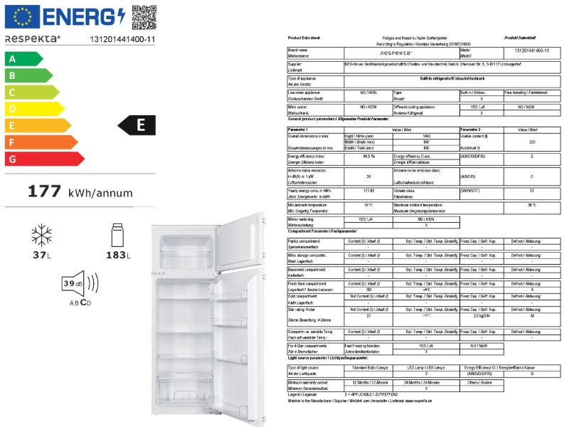 - Nutzinhalt: 220 Liter (183 l Kühlfach + 37 l 4* Gefrierfach)