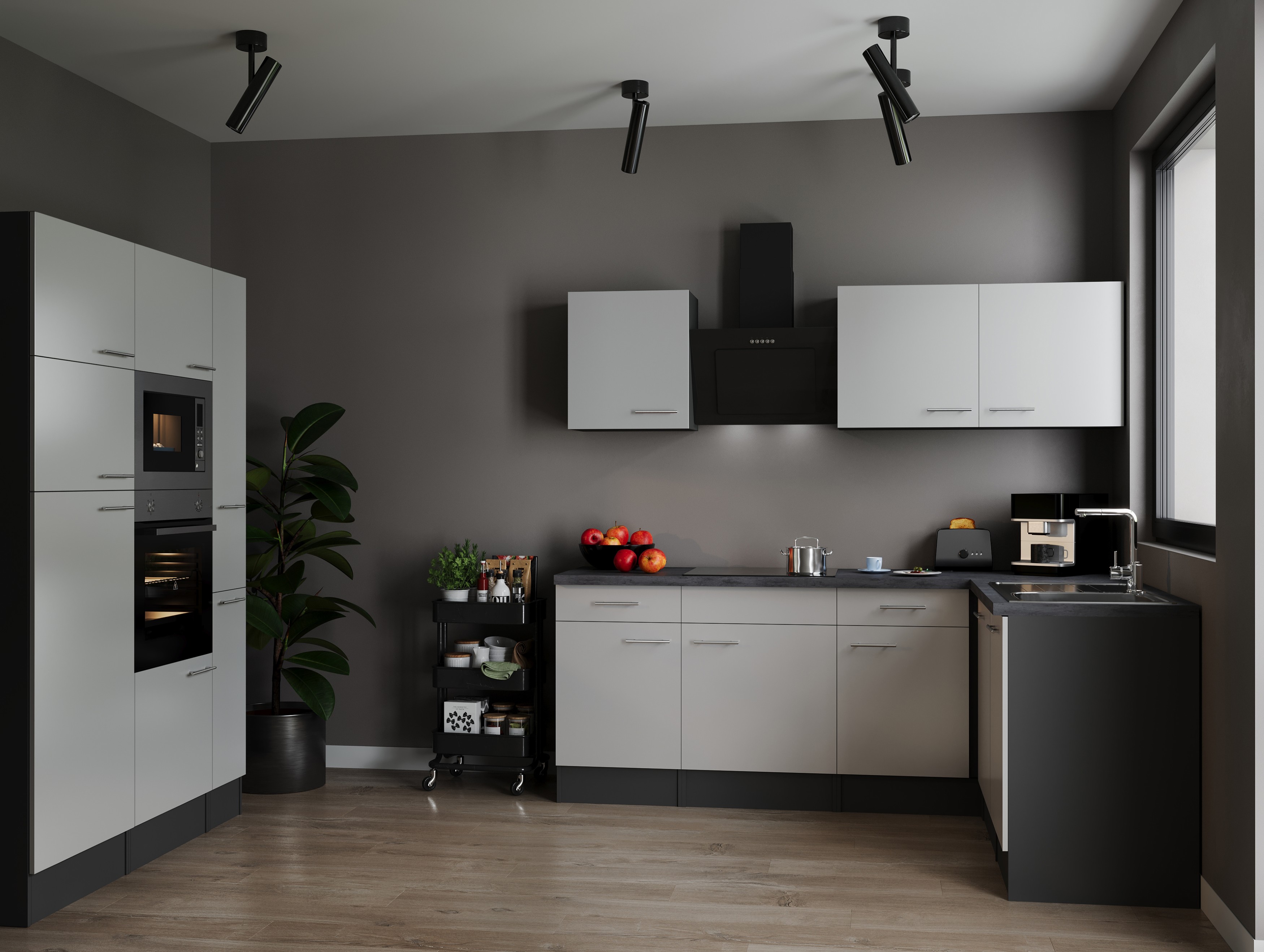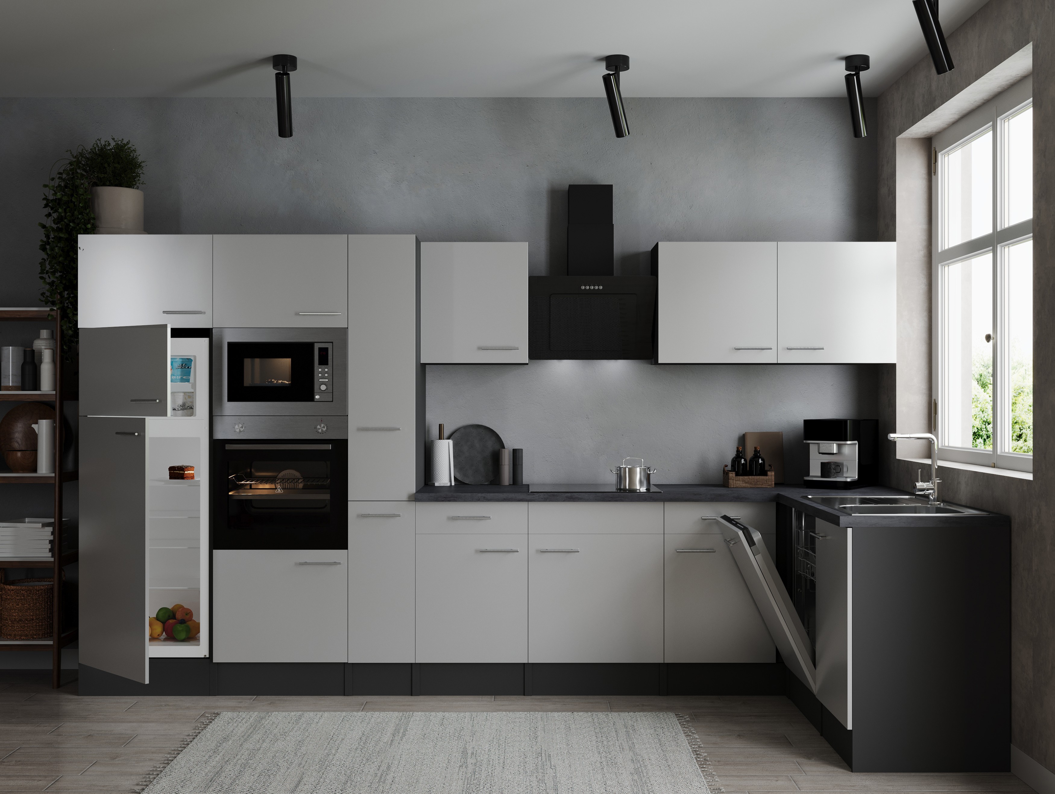 Produktinformationen "L Küche Küchenzeile Winkelküche Grau Matt Weiß Oliver 370 x 172 cm Respekta"