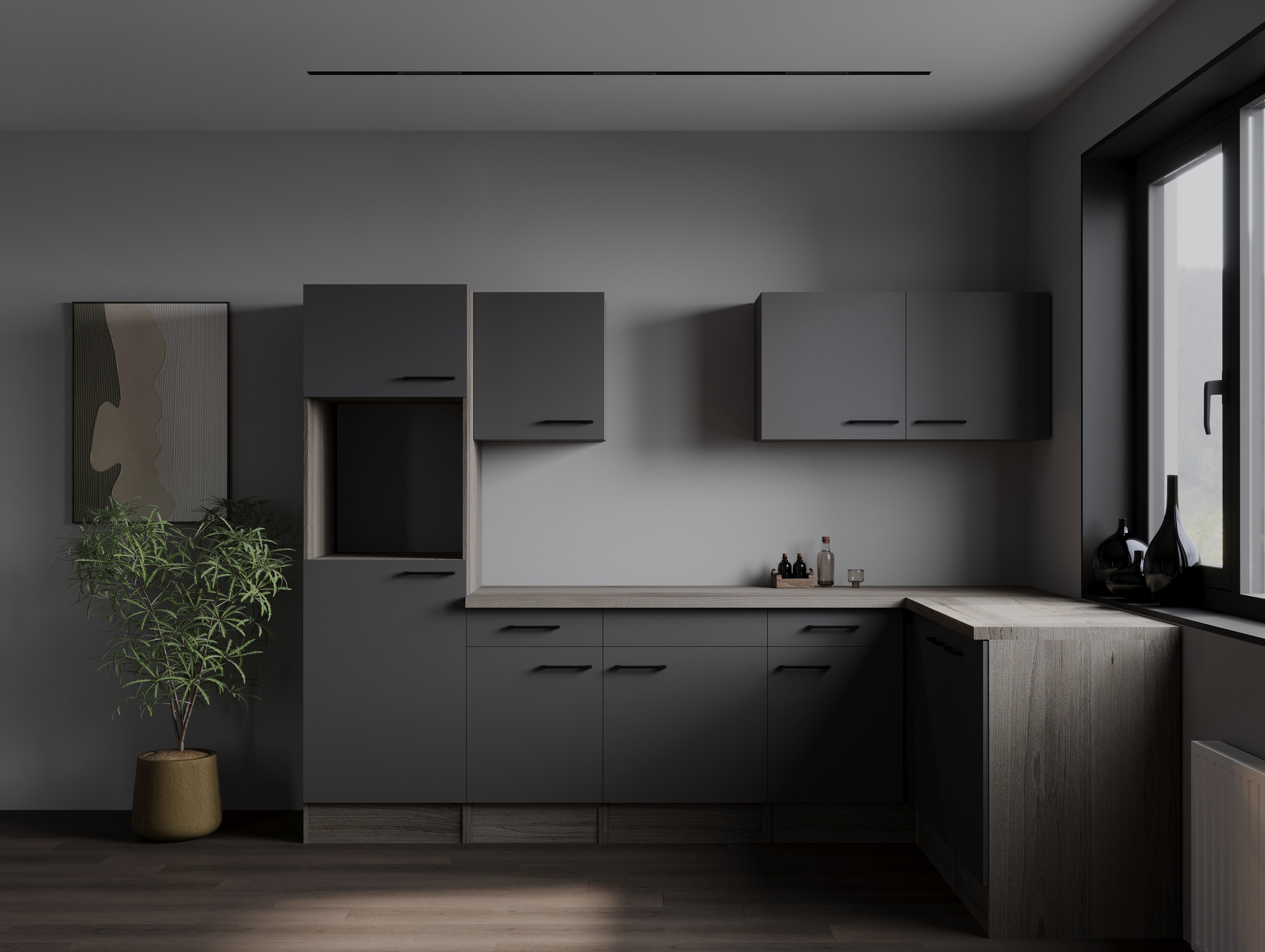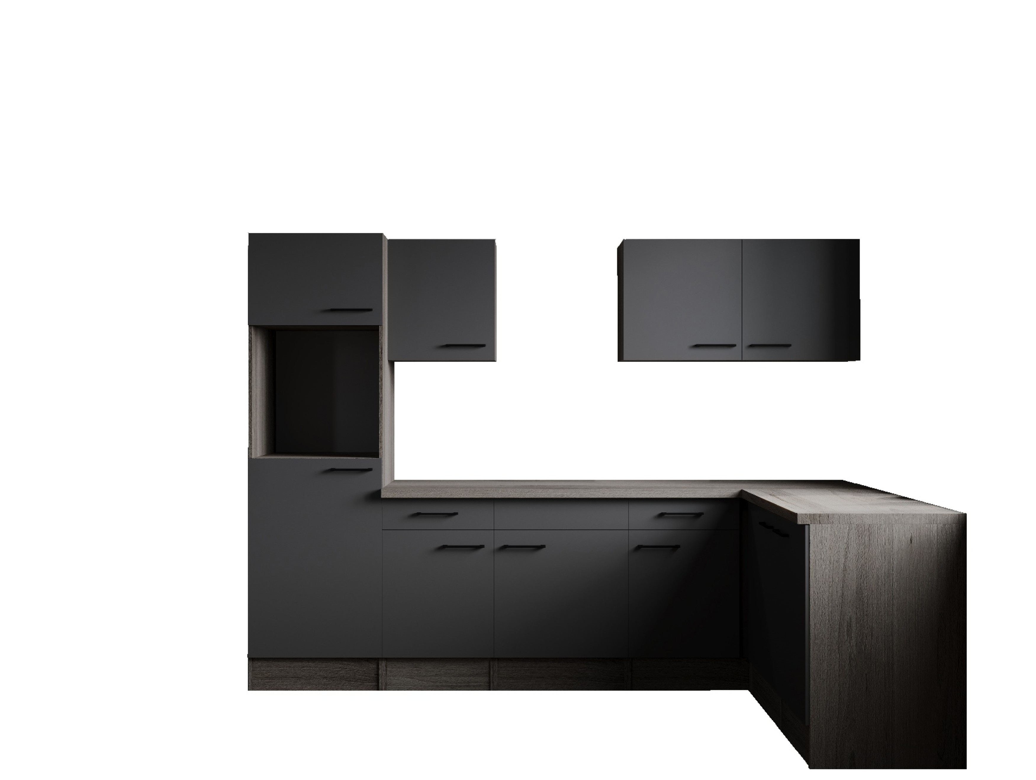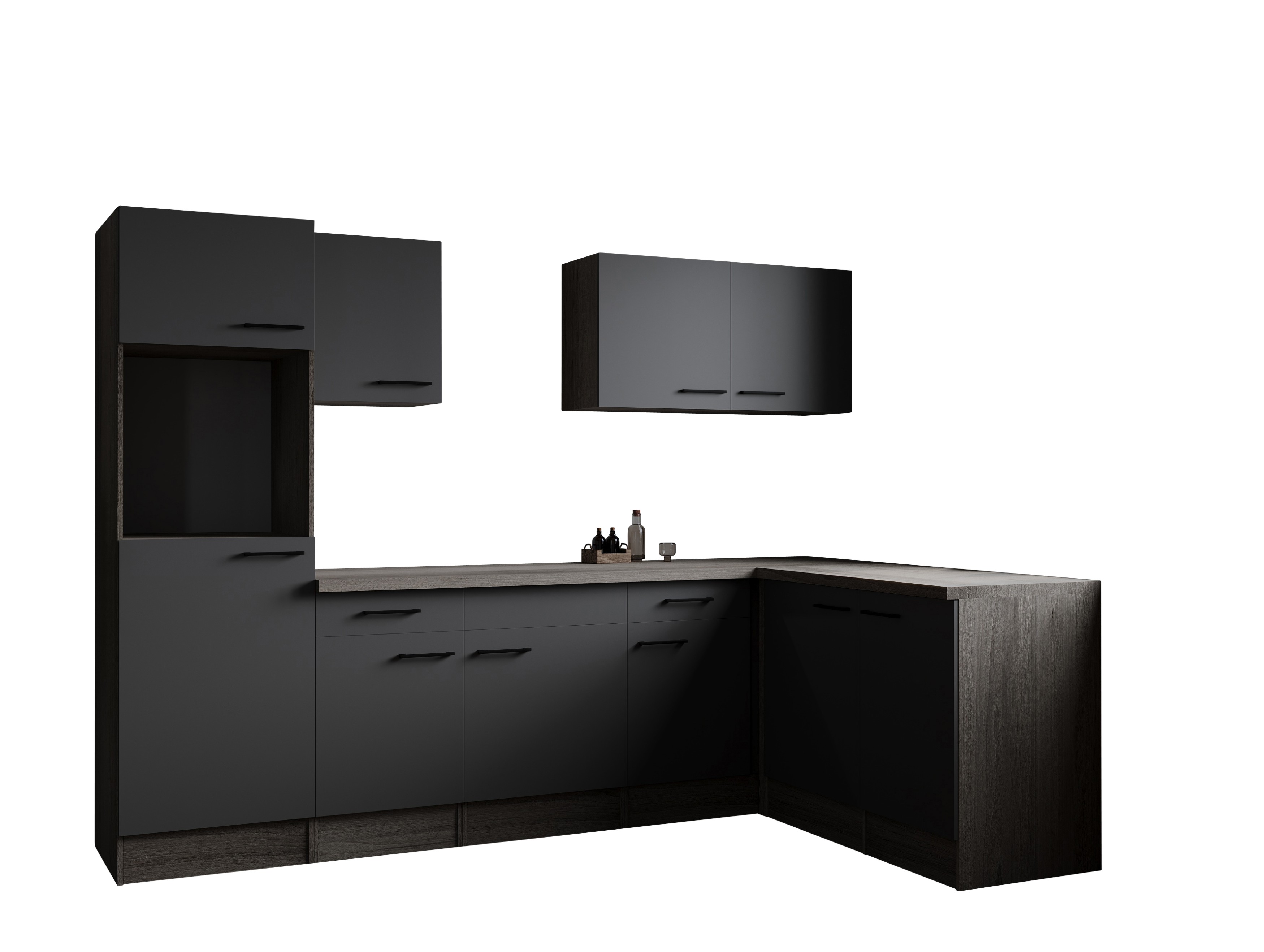 Winkelküche Leerblock Oliver – 280 x 172 cm in Grau Matt mit Eiche York Nachbildung