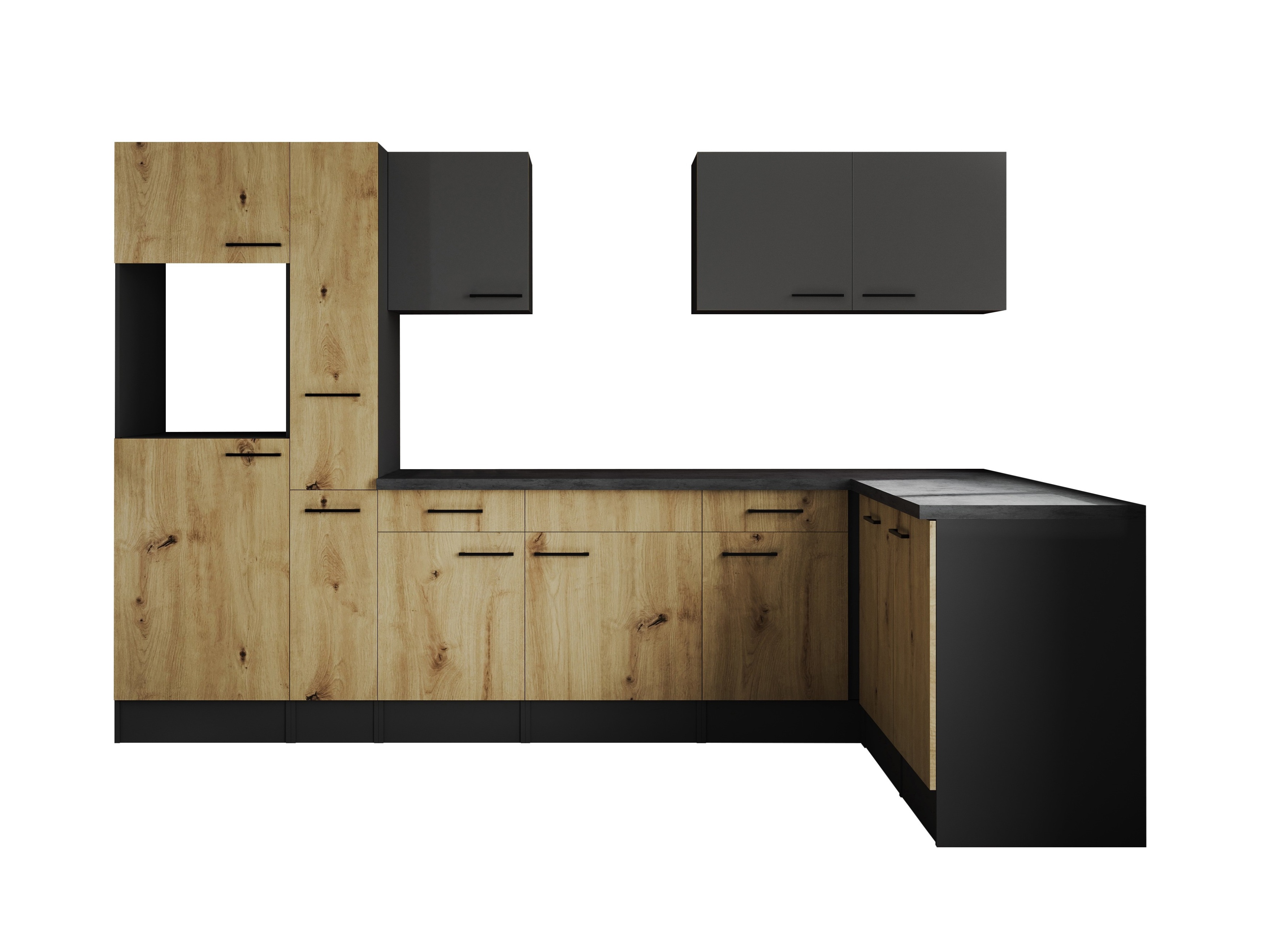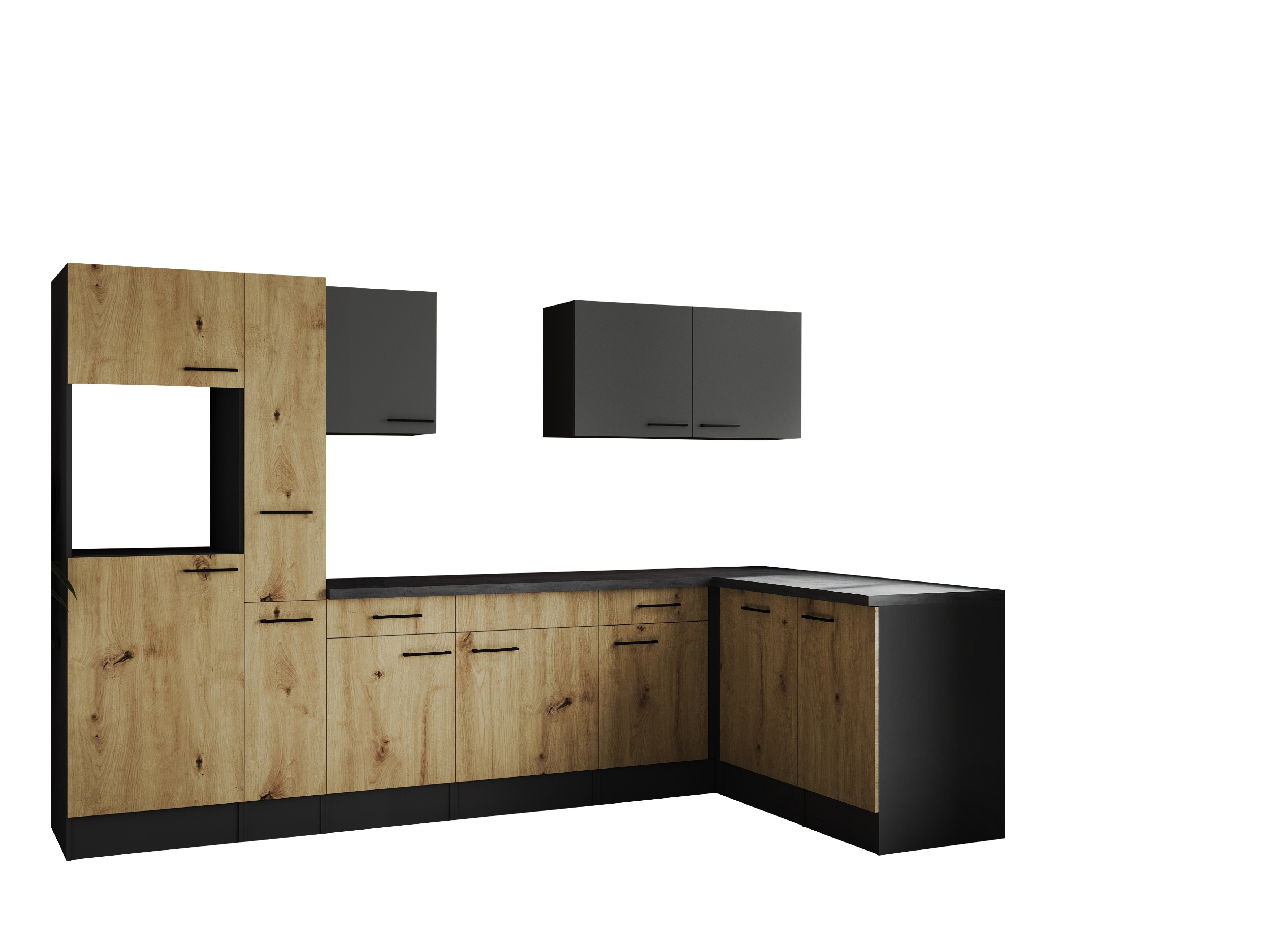Winkelküche Leerblock Oliver – 310 x 172 cm in Artisan Eiche Nachbildung und Granit Optik