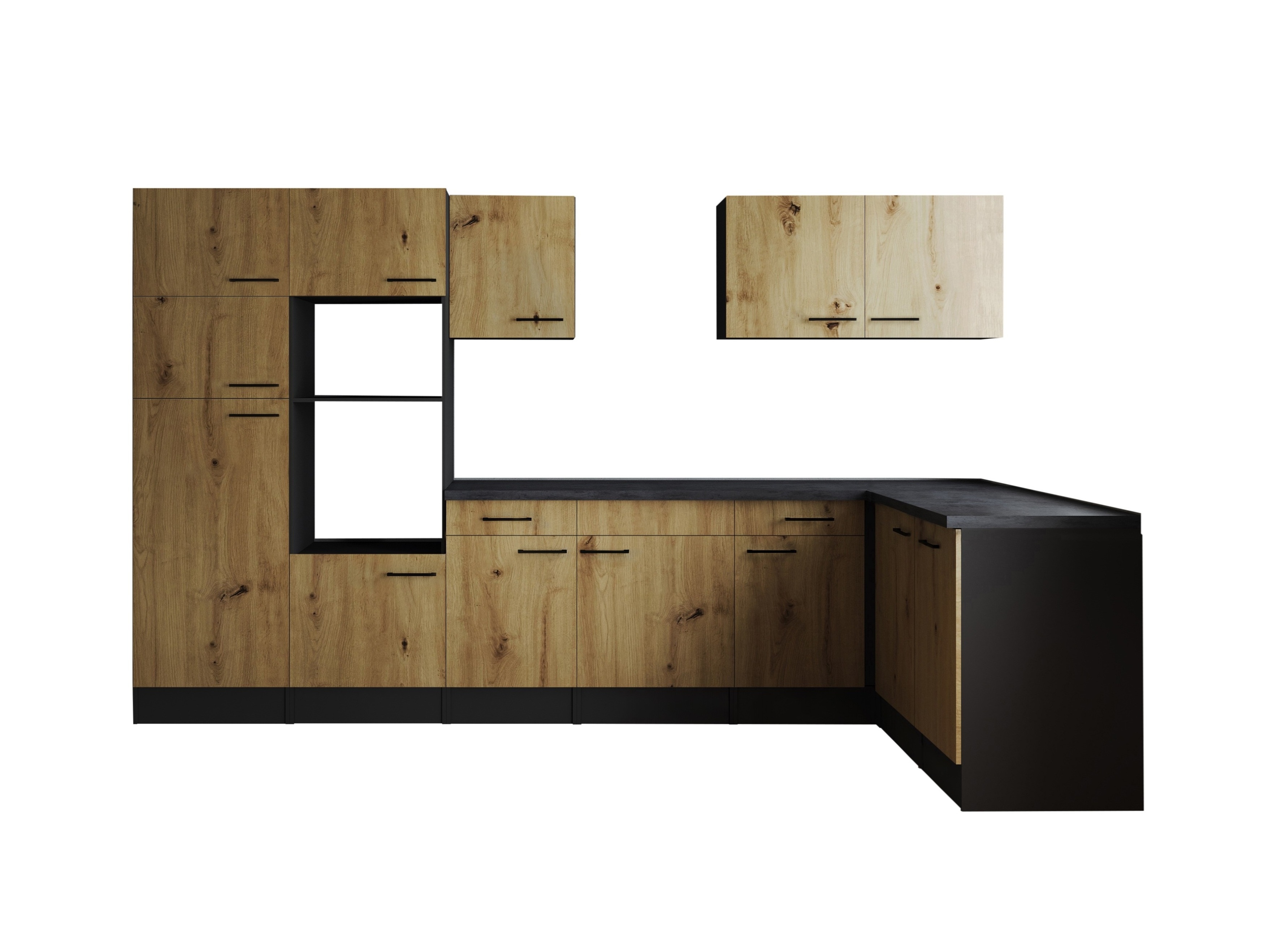 Winkelküche Leerblock Oliver – 340 x 172 cm in Artisan Eiche Nachbildung und Granit Optik