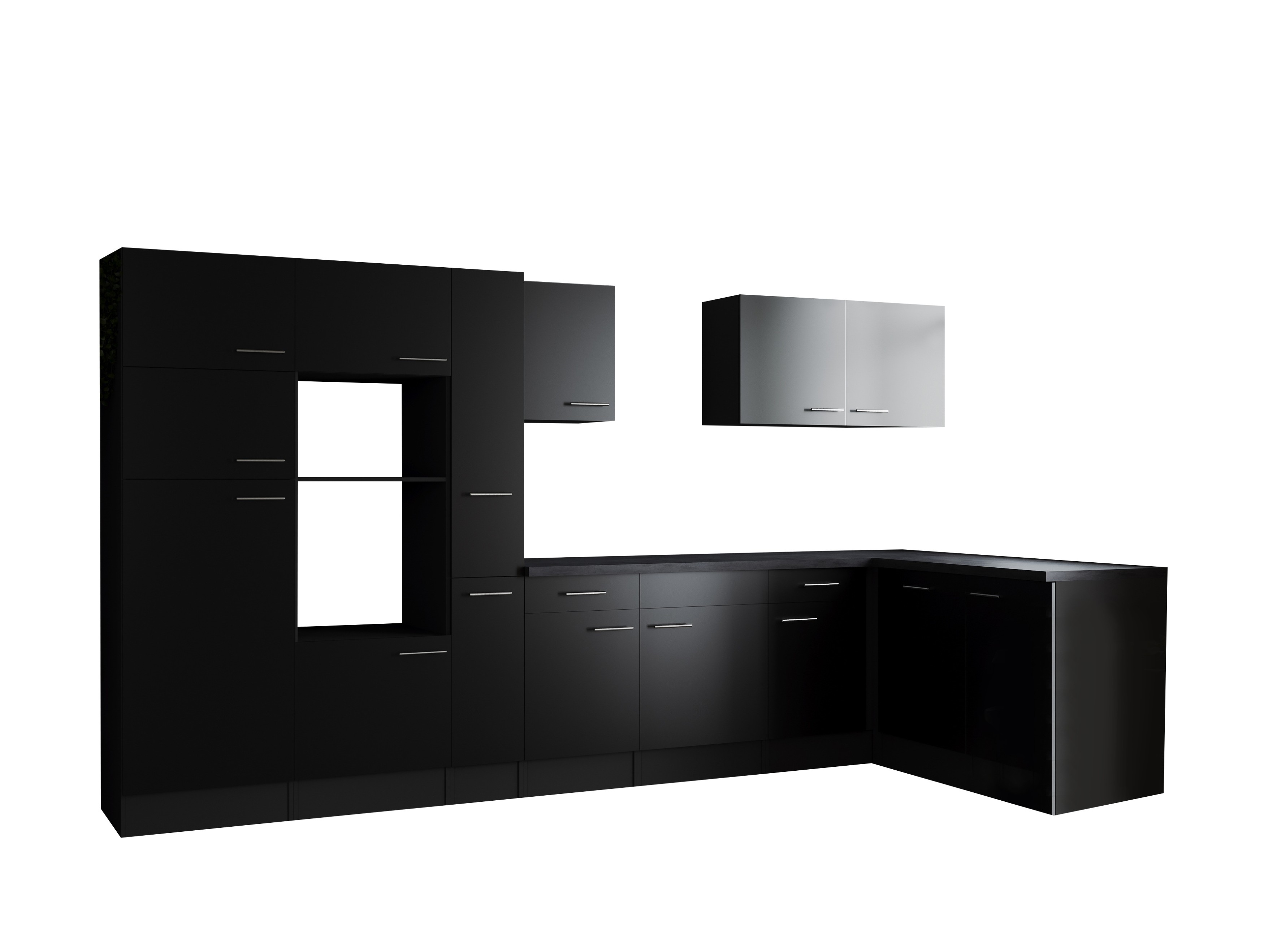 Produktinformationen "L Küche Leerblock Winkelküche Grau Matt Schwarz 370 x 172 cm Respekta"