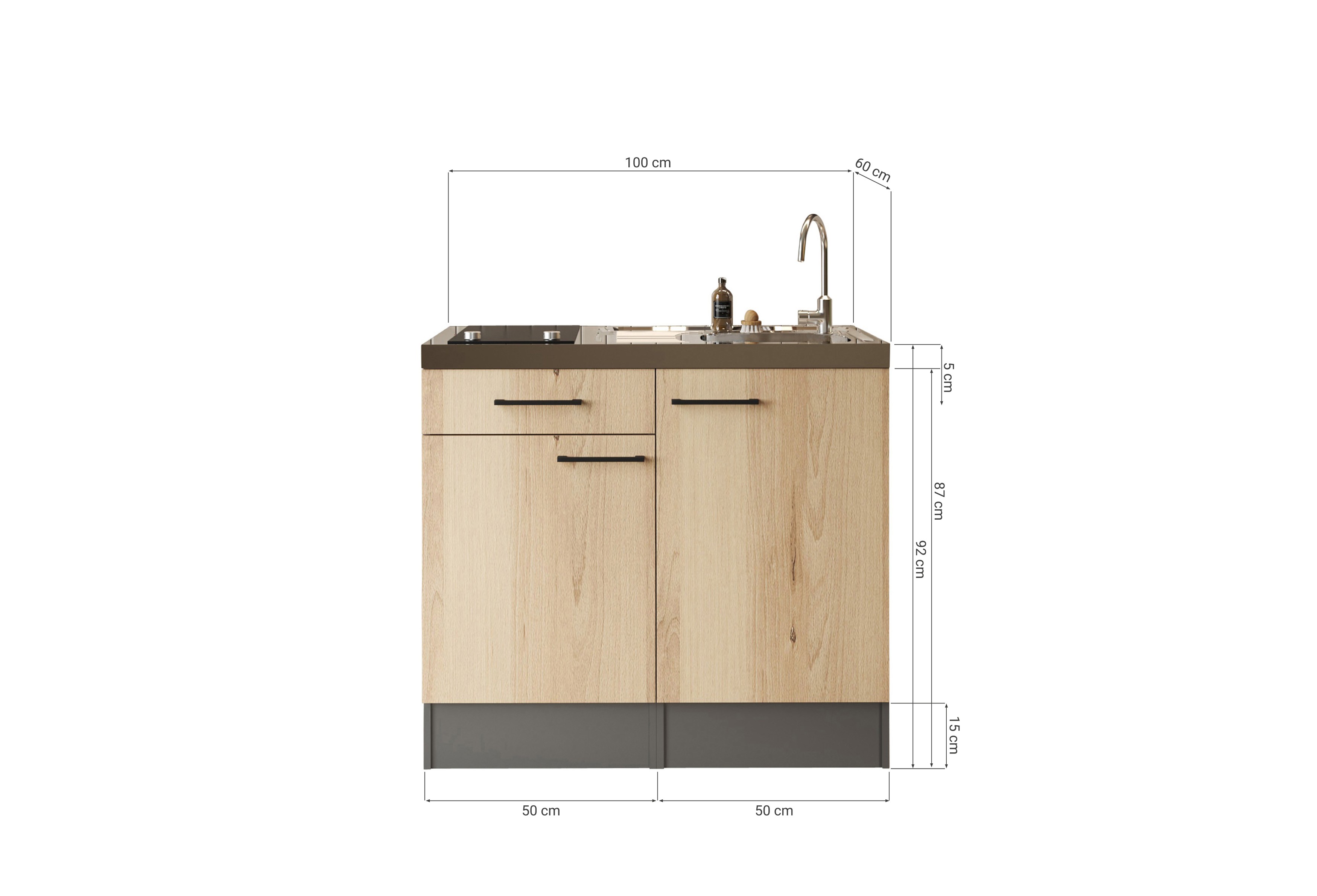 Produktinformationen "Miniküche Singleküche Küche Pantry 100 cm Artisan Eiche Grau Oliver Respekta"