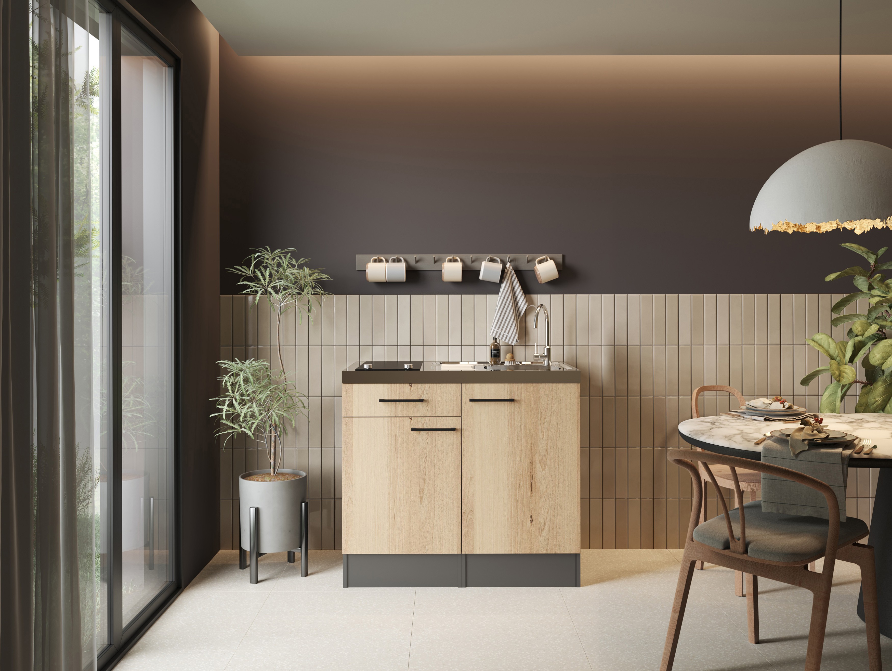 Oliver Kleinküche Pantry mit Glaskeramikkochfeld 100 cm – Kompakte Küchenlösung mit Kochfeld