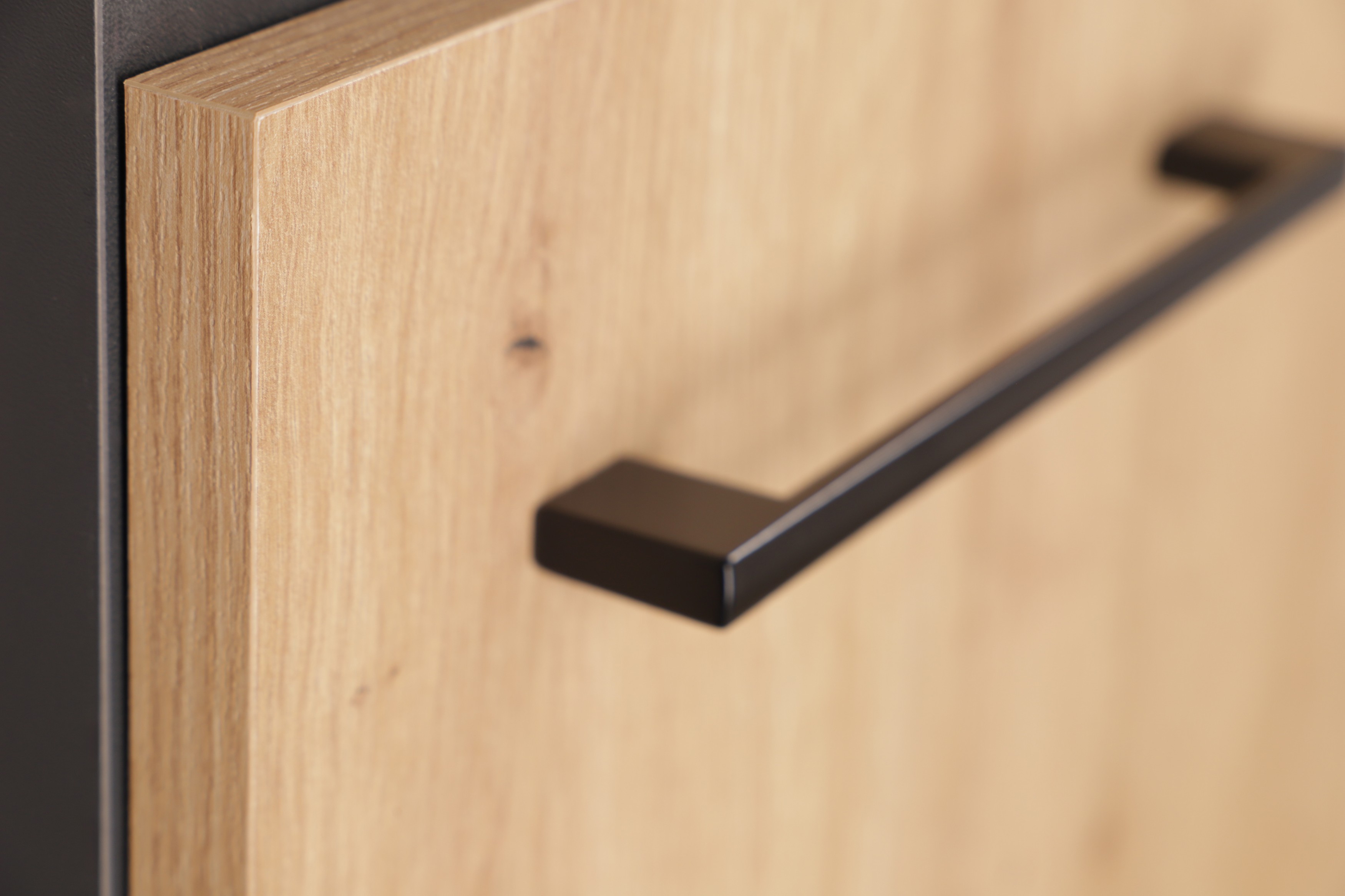 • Griffe: Dünne, elegante Metall-Stangengriffe in mattschwarz