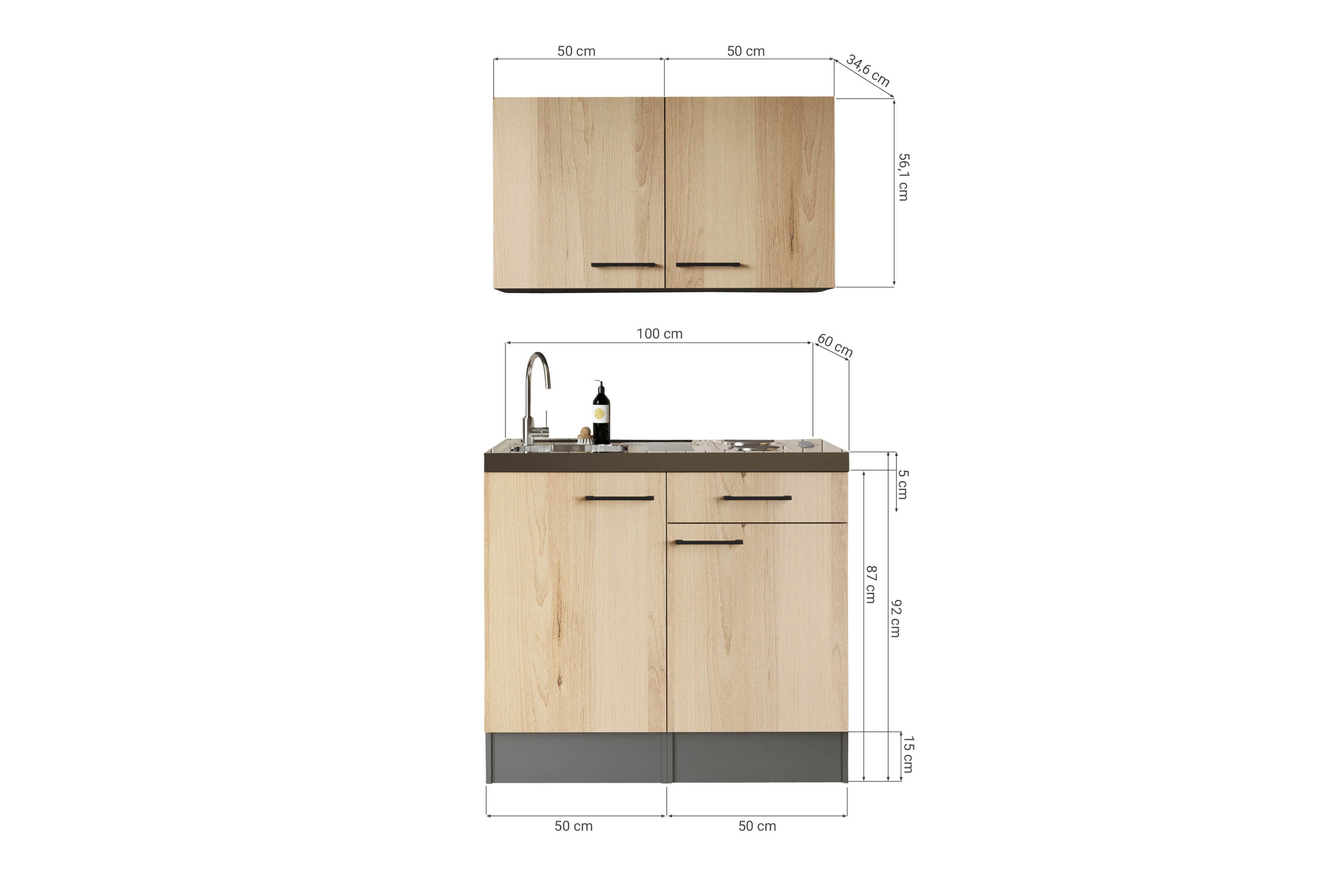 Produktinformationen "Miniküche Singleküche Küche Pantry Set 100 cm Artisan Eiche Grau Oliver Respekta"