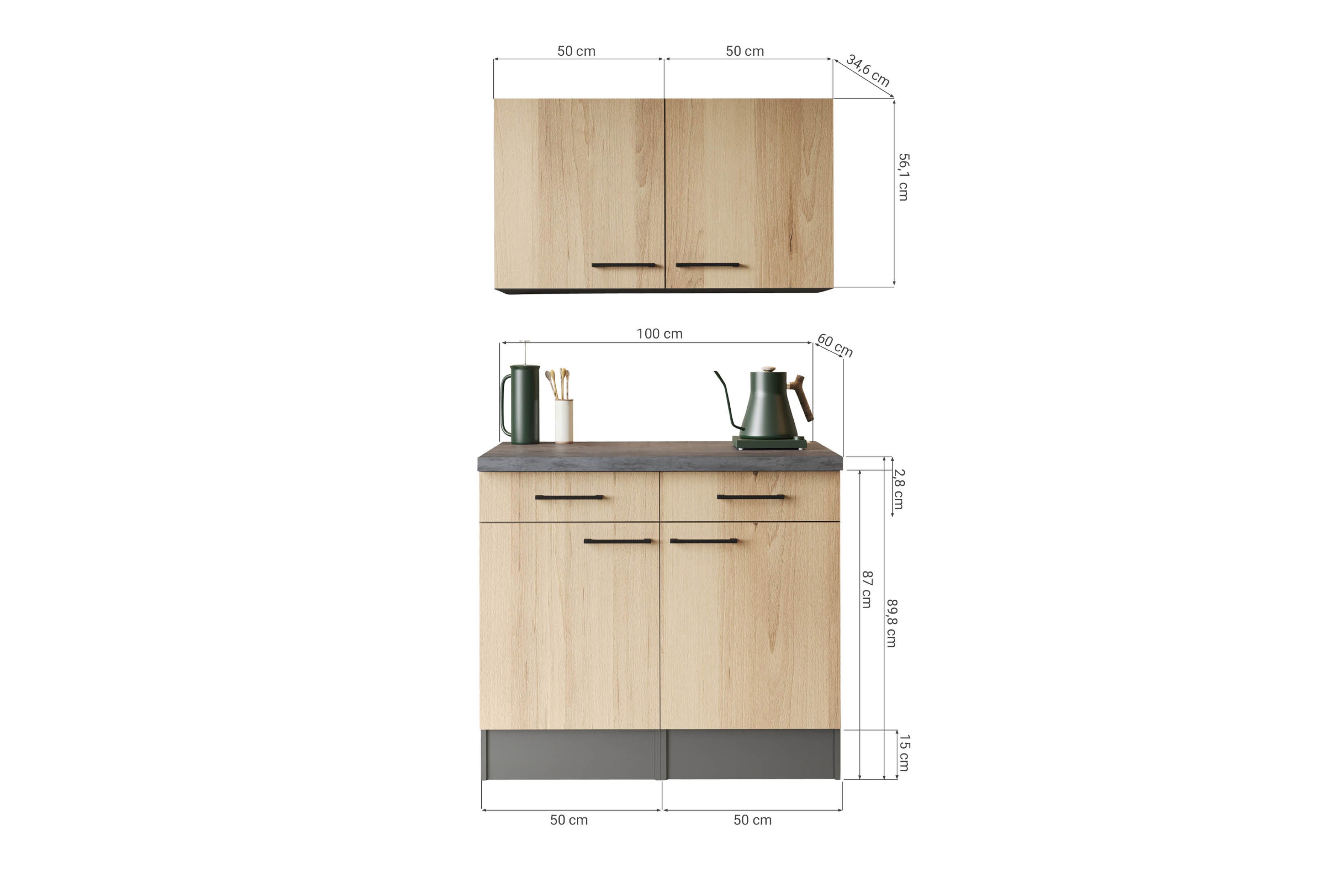 Oliver Sideboard Set mit Oberschränken 100 cm – Küchenlösung mit Stauraum und Arbeitsplatte