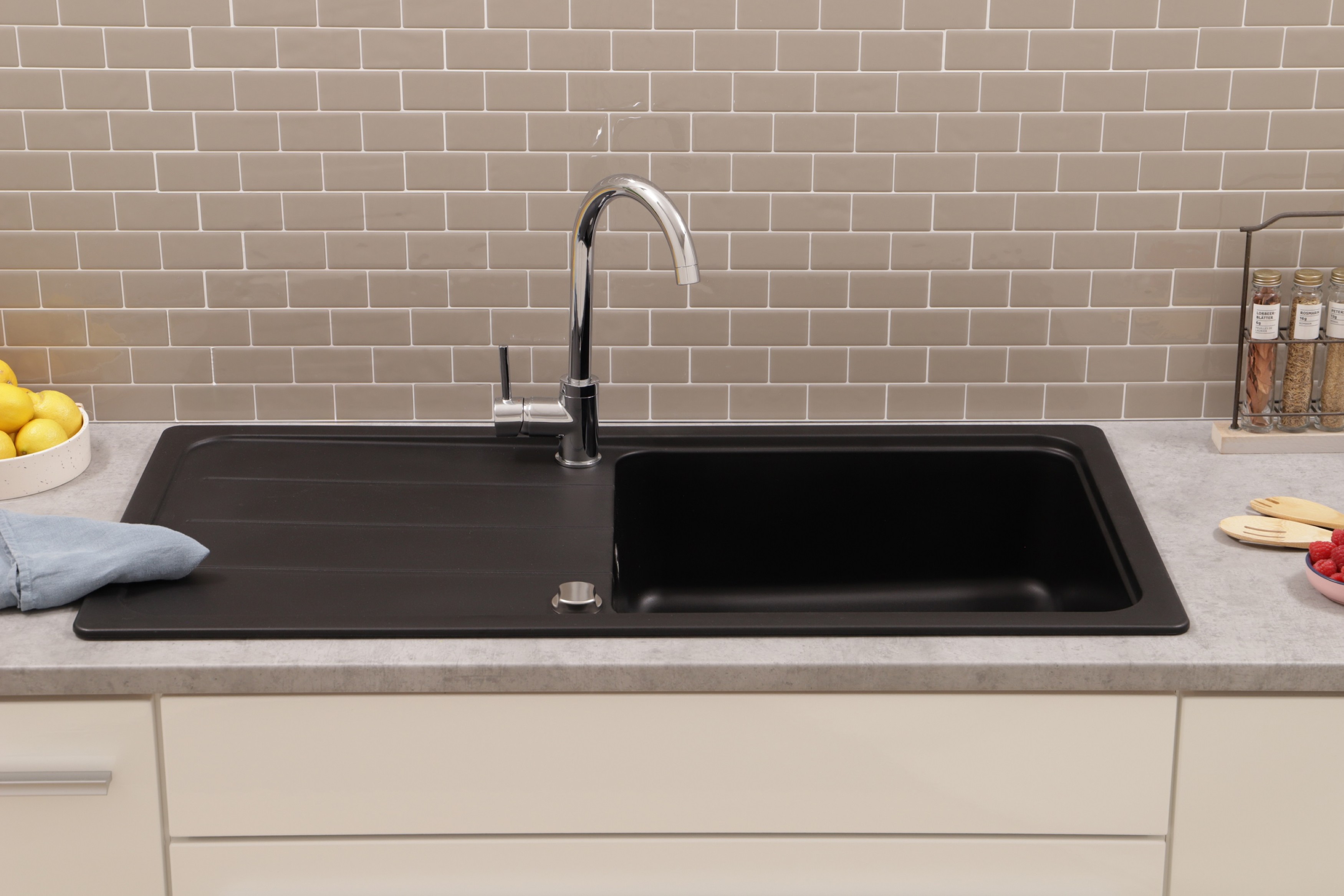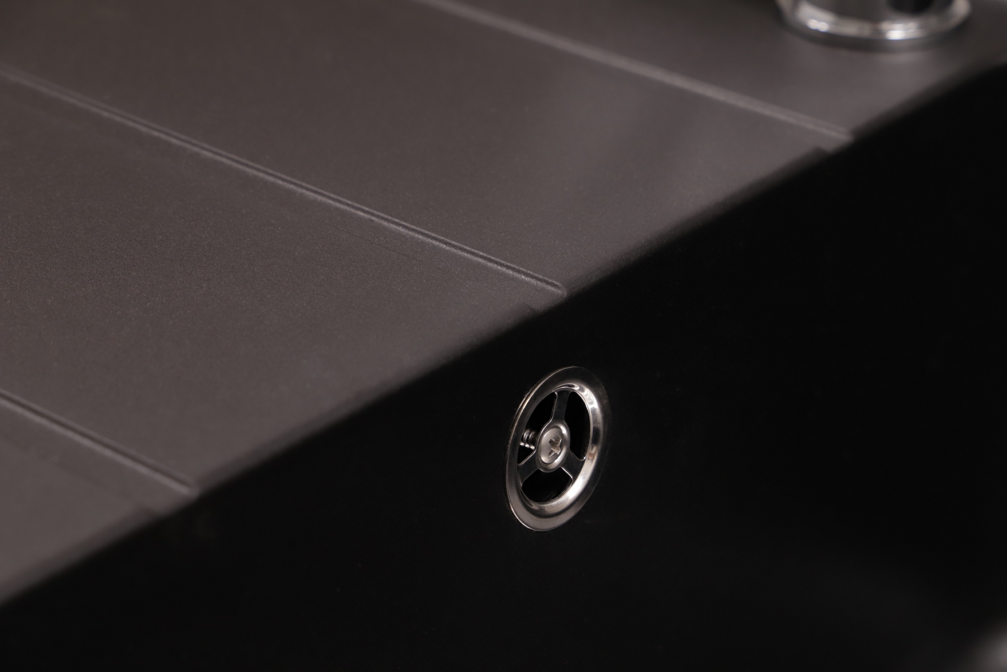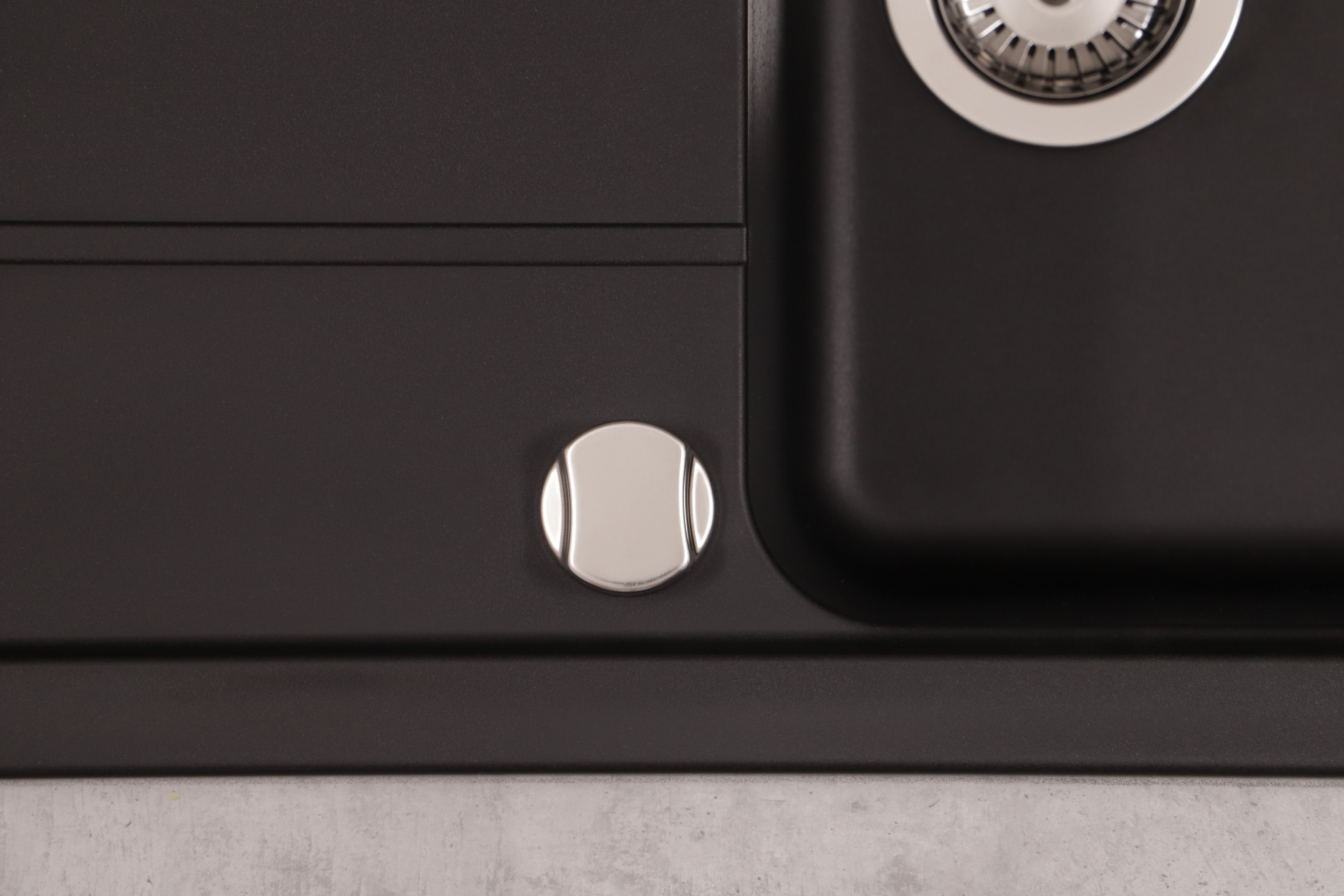 - Langlebiges Material: Die Spüle besteht aus einem Granitverbund-Material, das zu 70 % aus Quarzsand, zu 26 % aus Kunstharz und zu 4 % aus Additiven besteht. Diese Zusammensetzung sorgt für eine außergewöhnliche Beständigkeit gegen Kratzer, Stöße und aggressive Chemikalien.