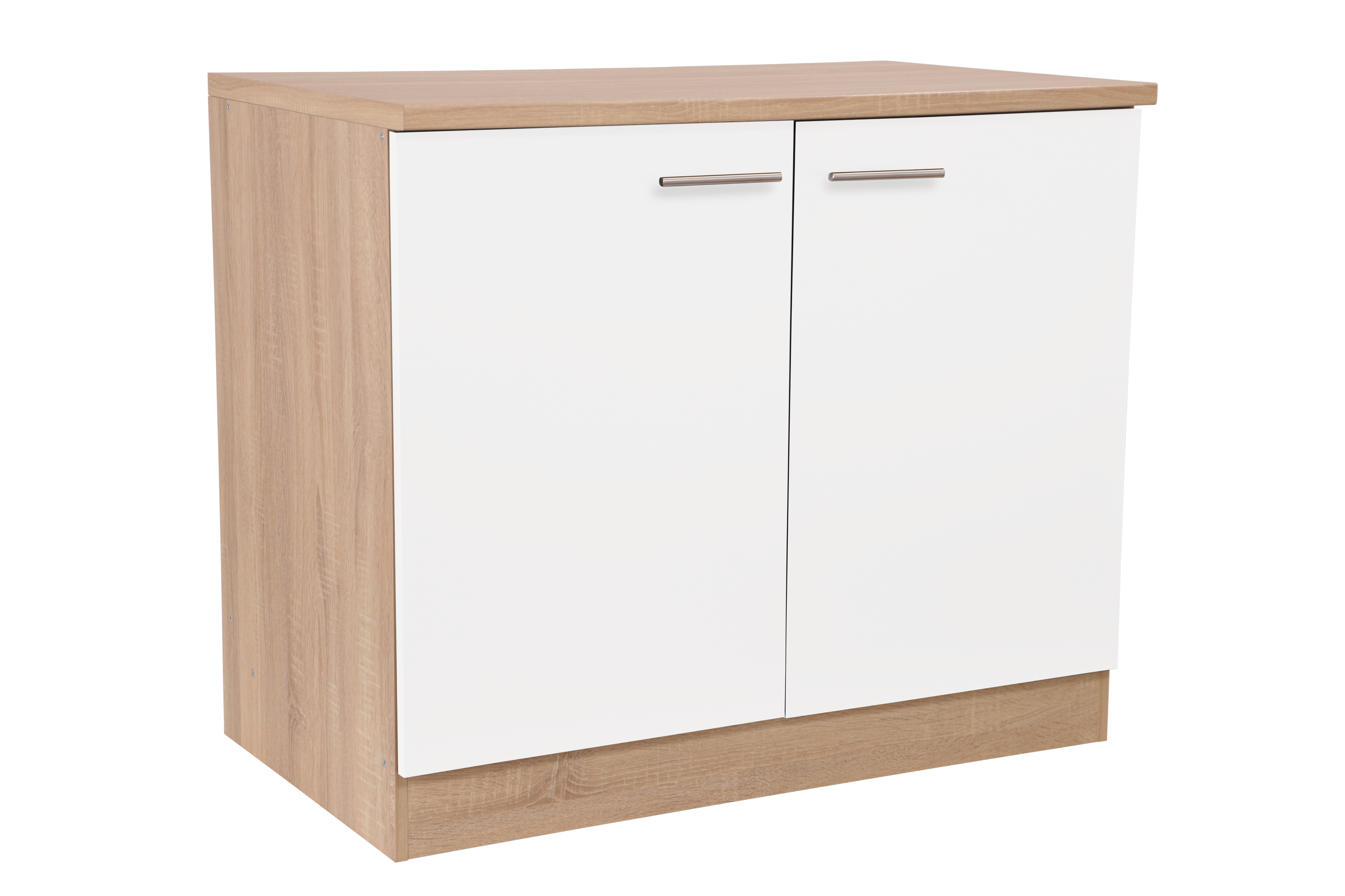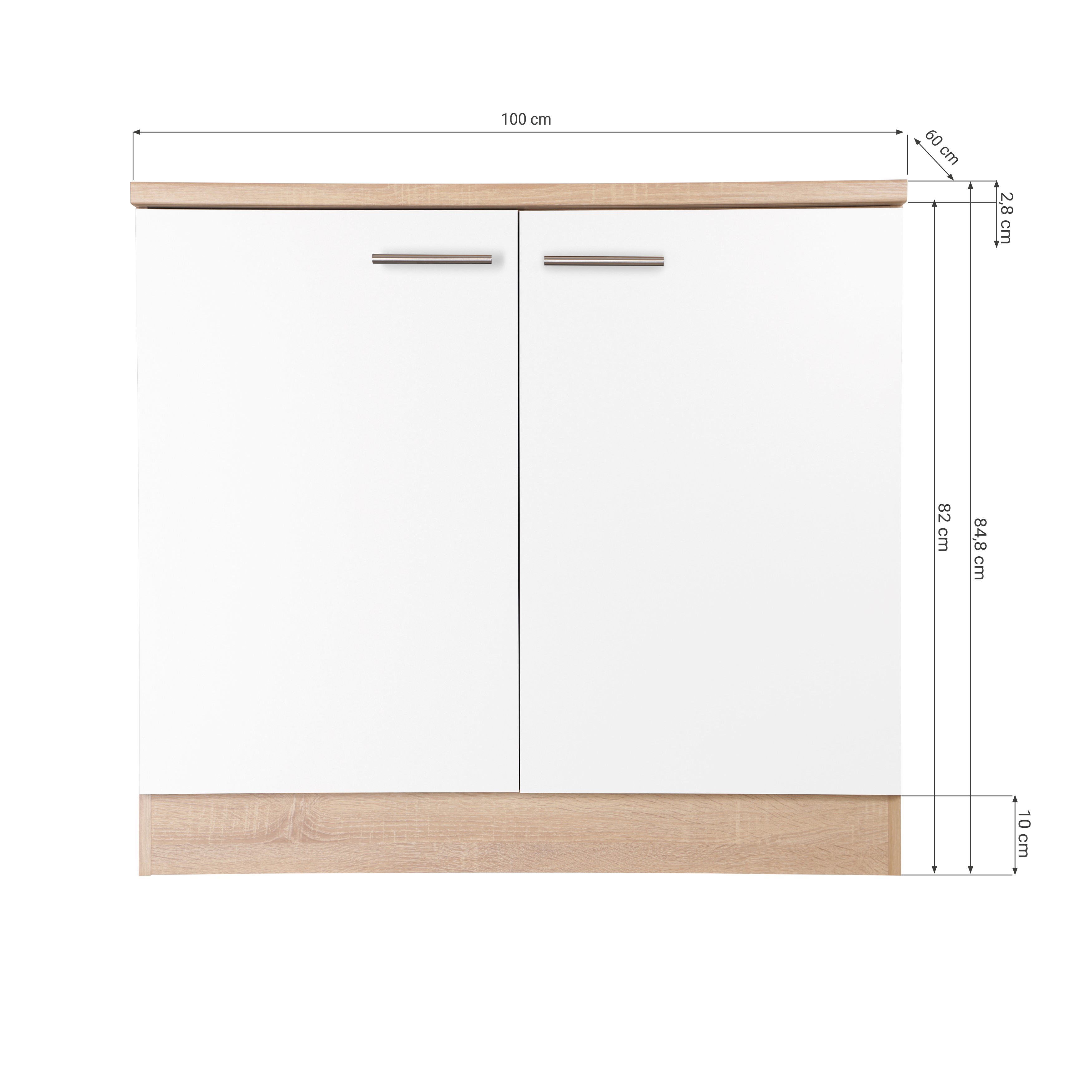 Product information "Spülenunterschrank Küchenschrank 100 cm Eiche Sägerau Weiß Merle Respekta"