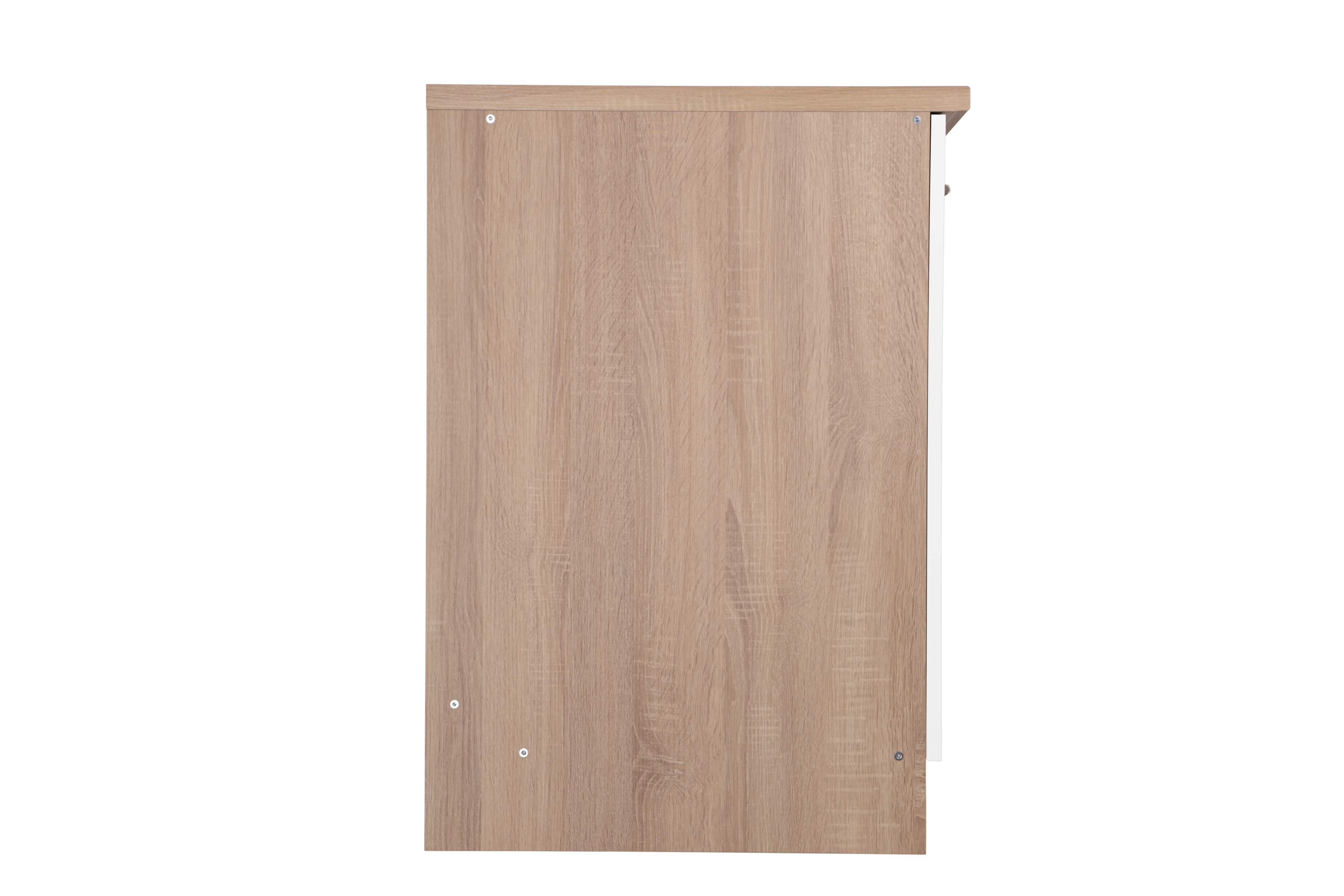 Der Merle Spülenunterschrank 100 cm überzeugt durch modernes Design, hochwertige Verarbeitung und praktische Funktionen. Mit seinem Korpus in Eiche Sägerau Nachbildung und den in Weiß, Grau oder Schwarz erhältlichen Fronten fügt er sich stilvoll in jede Küche ein. Die Soft-Close-Scharniere ermöglichen ein sanftes und geräuschloses Schließen der Türen, während die hochwertigen Metallgriffe für eine elegante Optik sorgen.