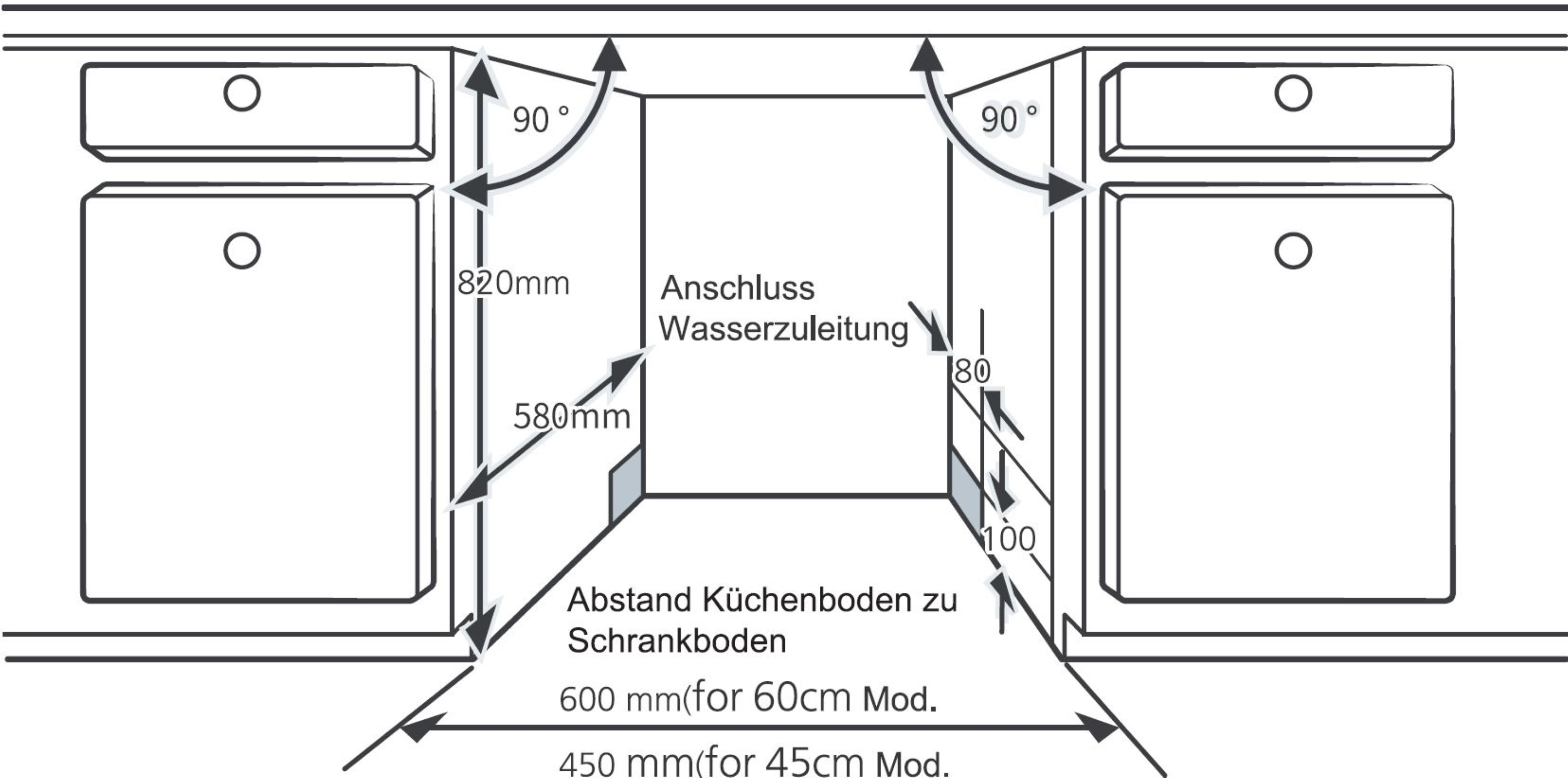 - Dimensions built-in (HxWxD): 82 - 86.5 x 45.0 x 58 cm