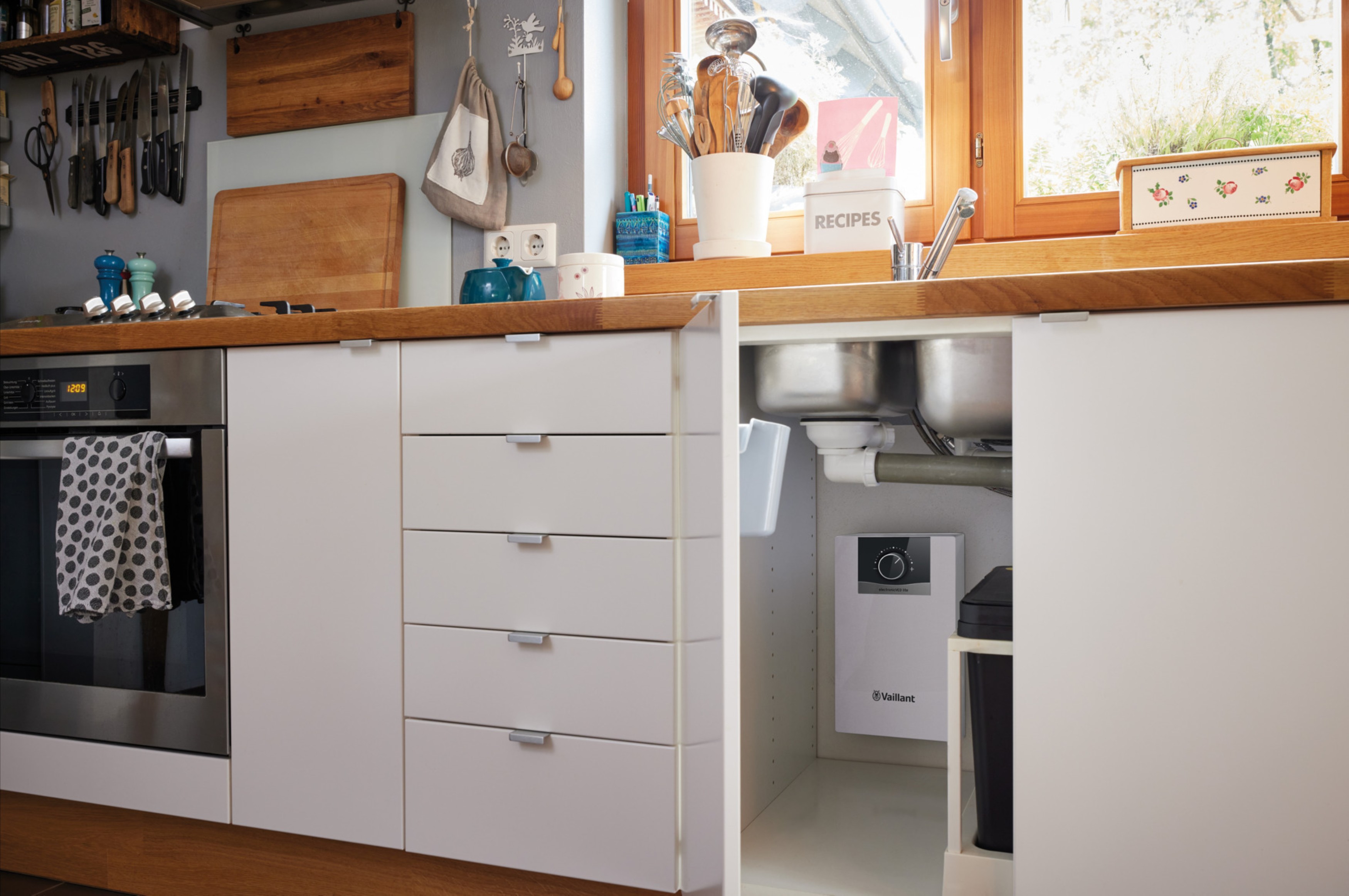 - Kompaktes Design: Das platzsparende Gerät lässt sich unauffällig unter Waschbecken oder Spülen installieren