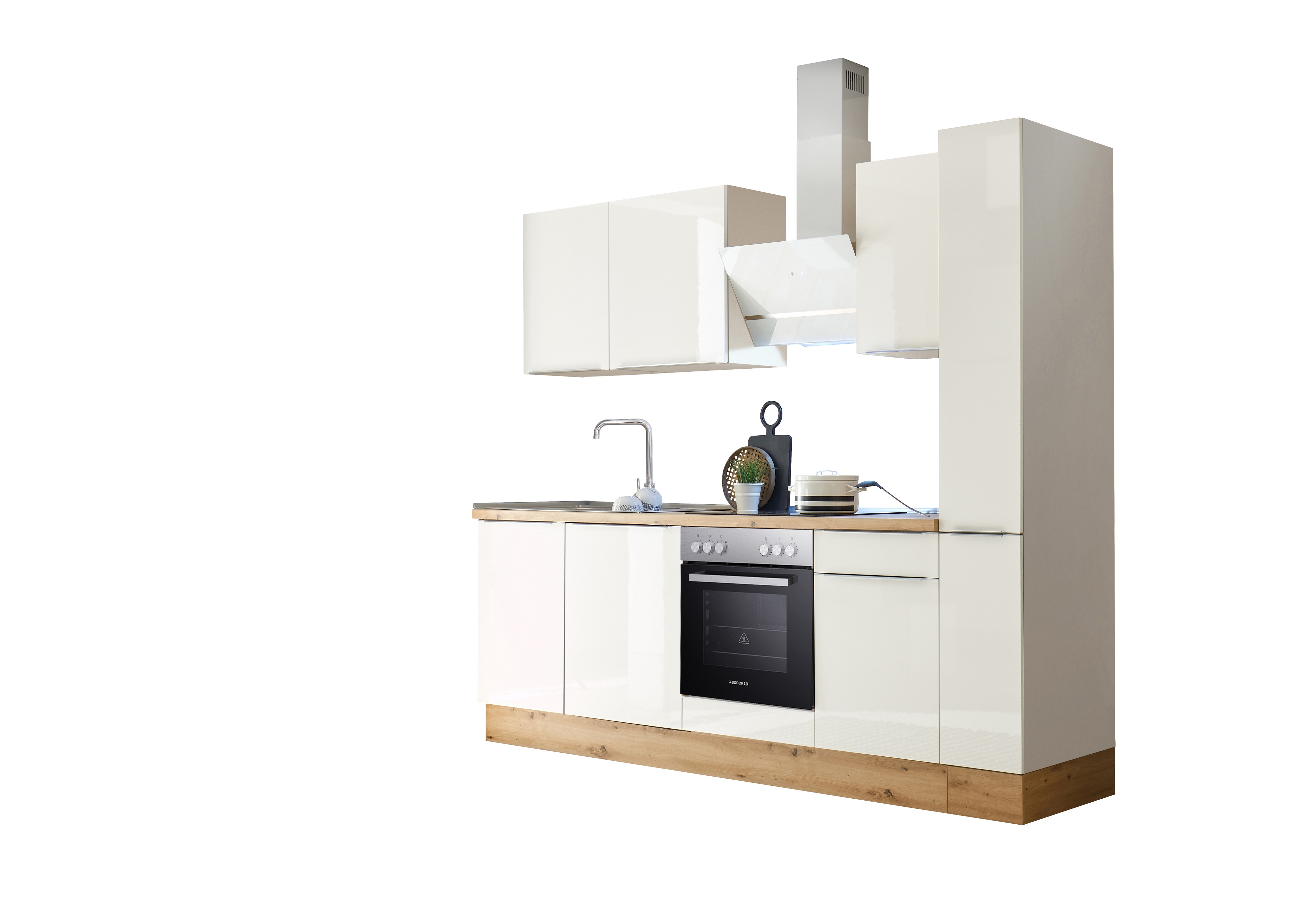 Eigenschaften "Küche Küchenzeile Küchenblock Marleen Premium 250 cm Weiß Artisan Eiche Respekta"