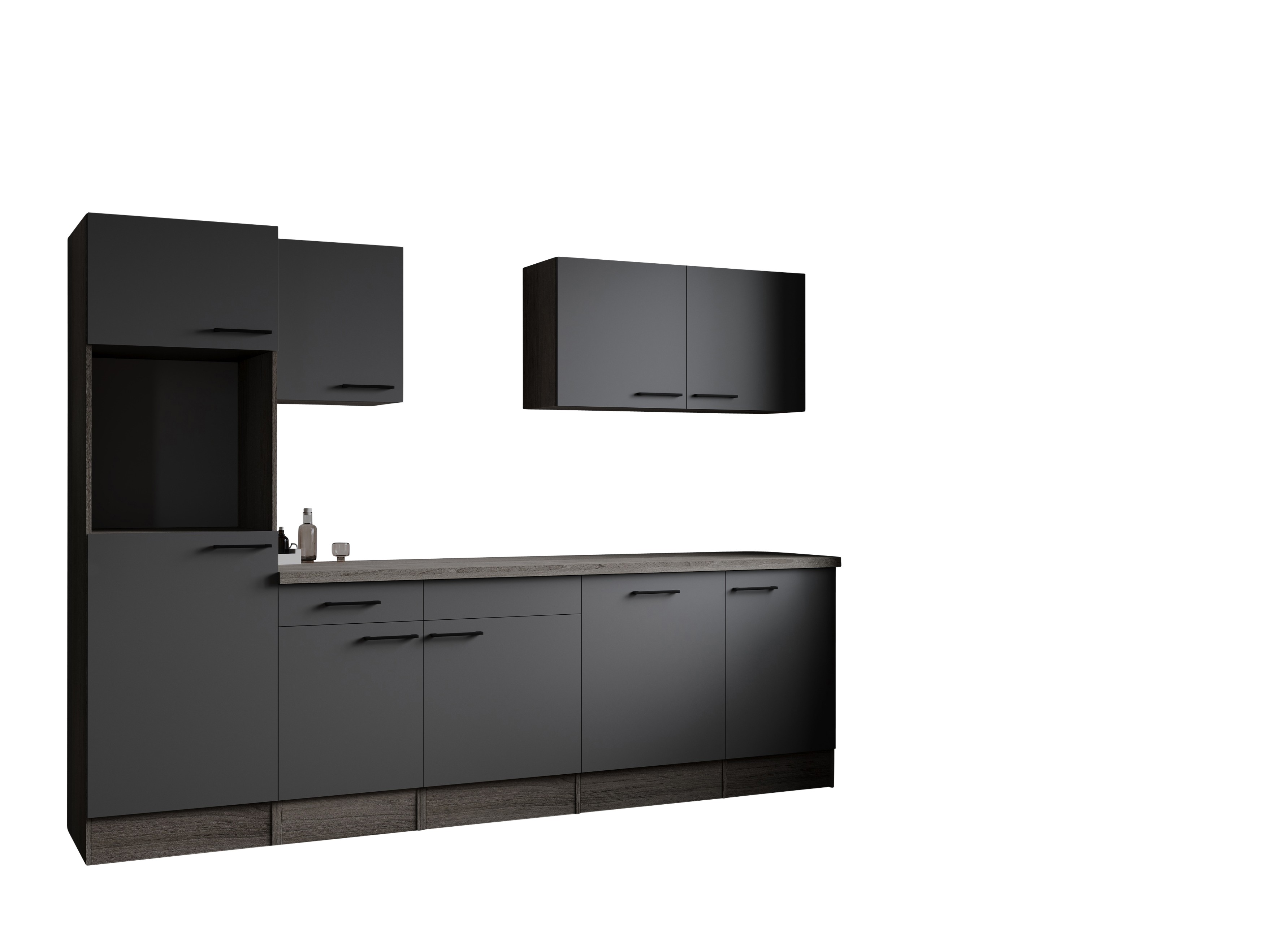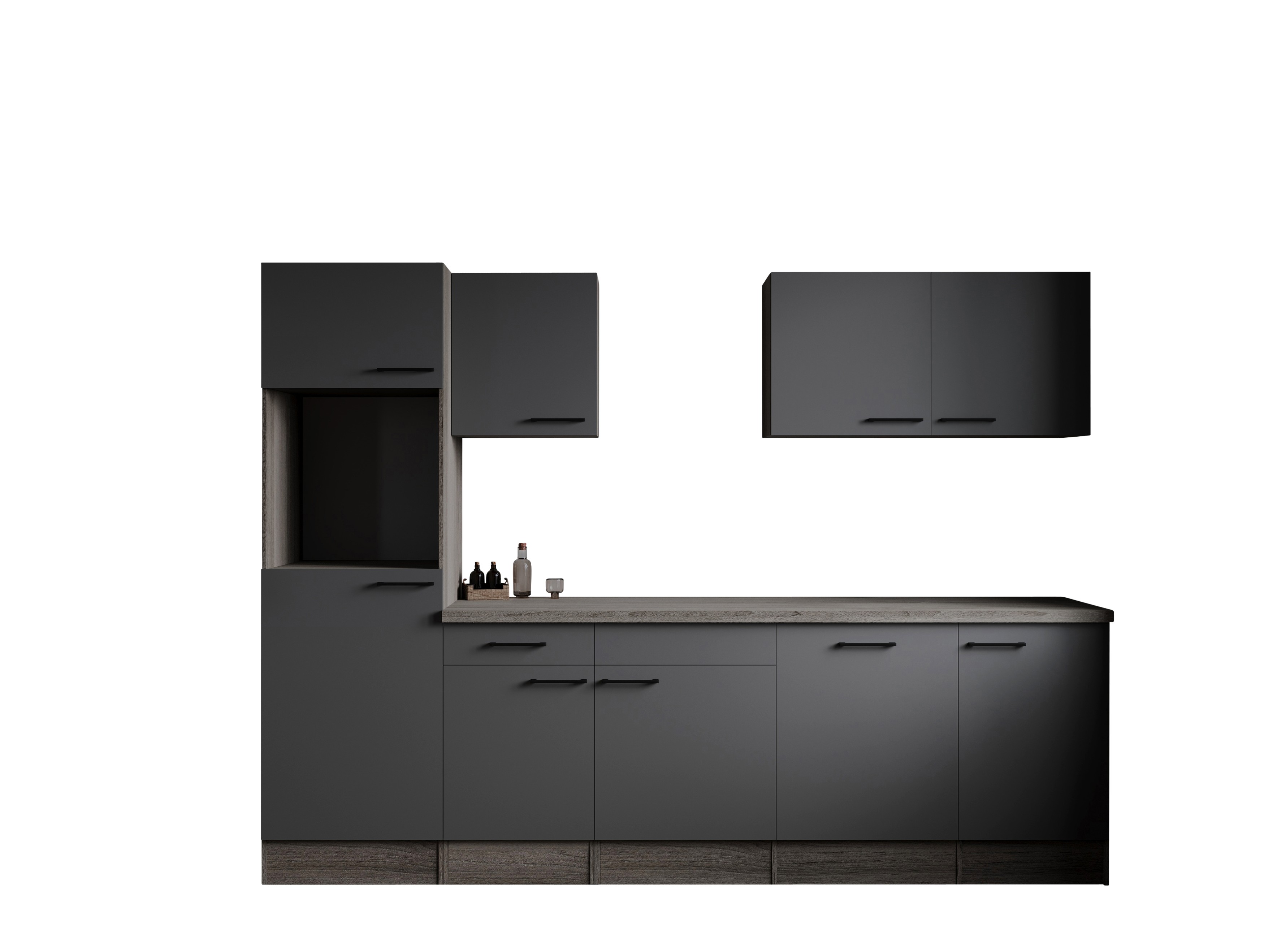 Küche Leerblock Oliver – 280 cm in Grau Matt mit Eiche York Nachbildung