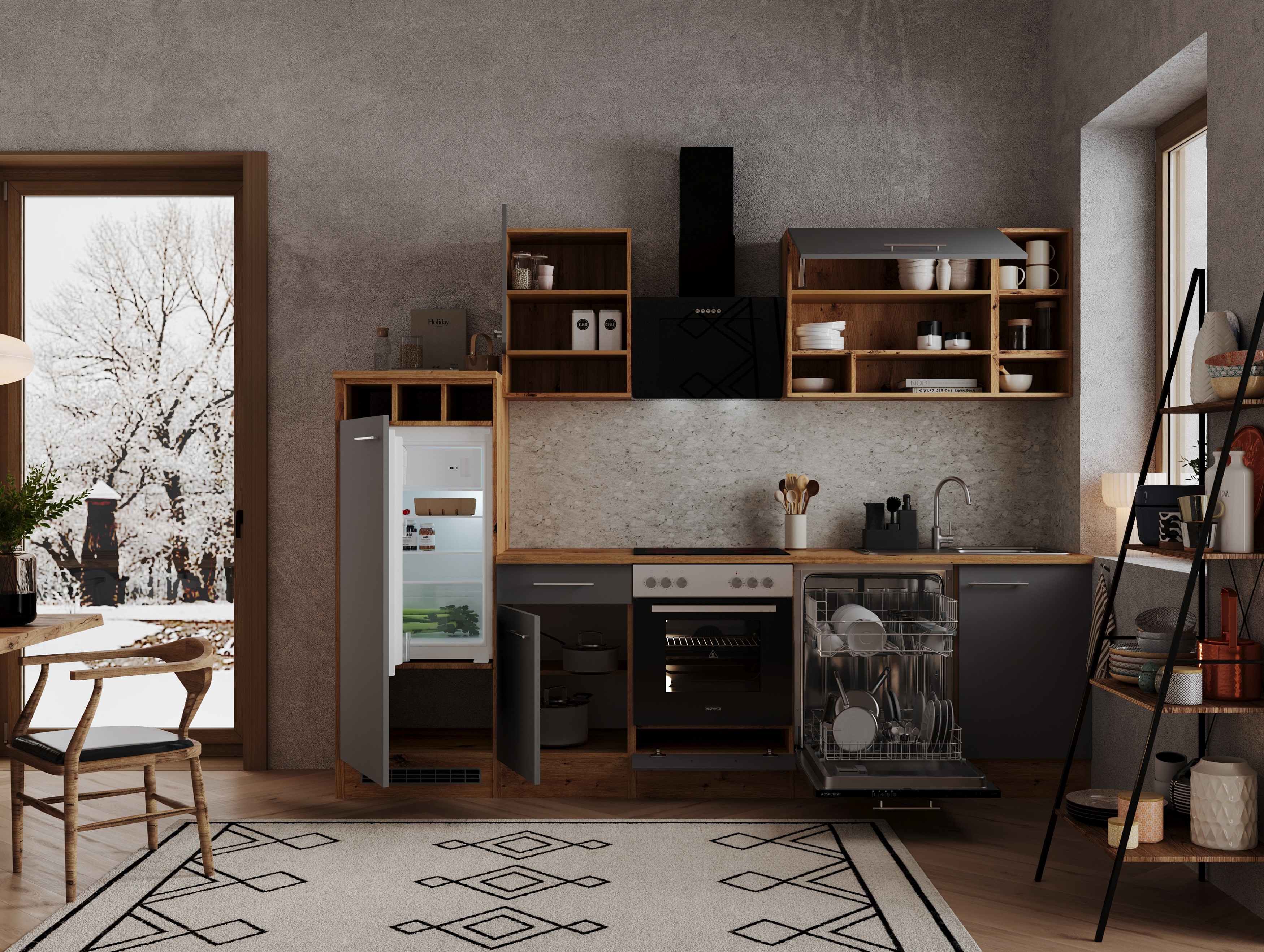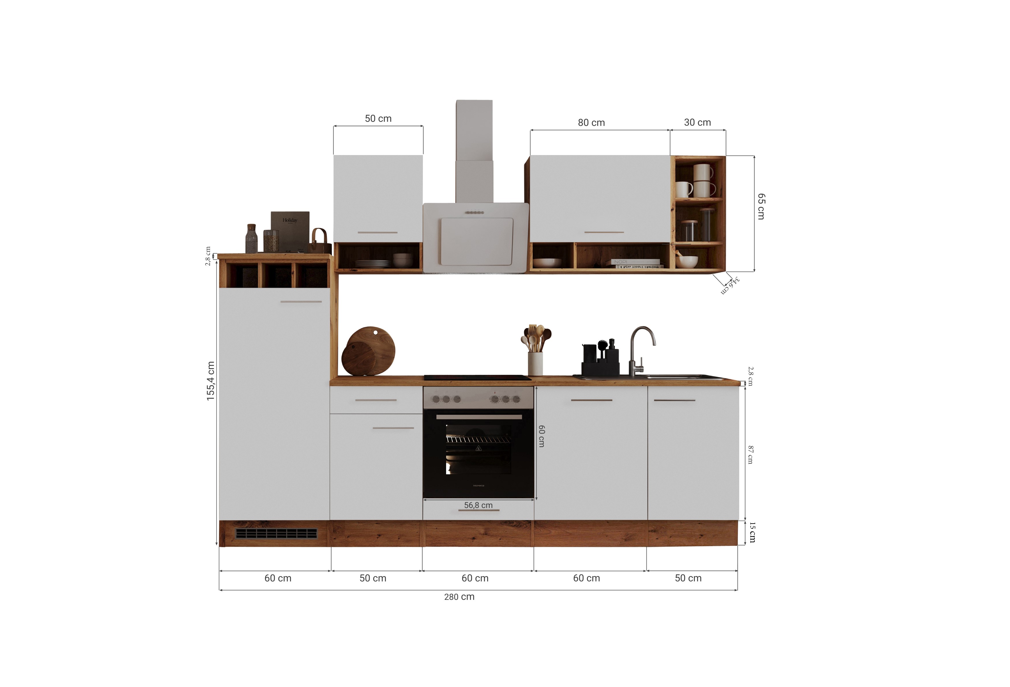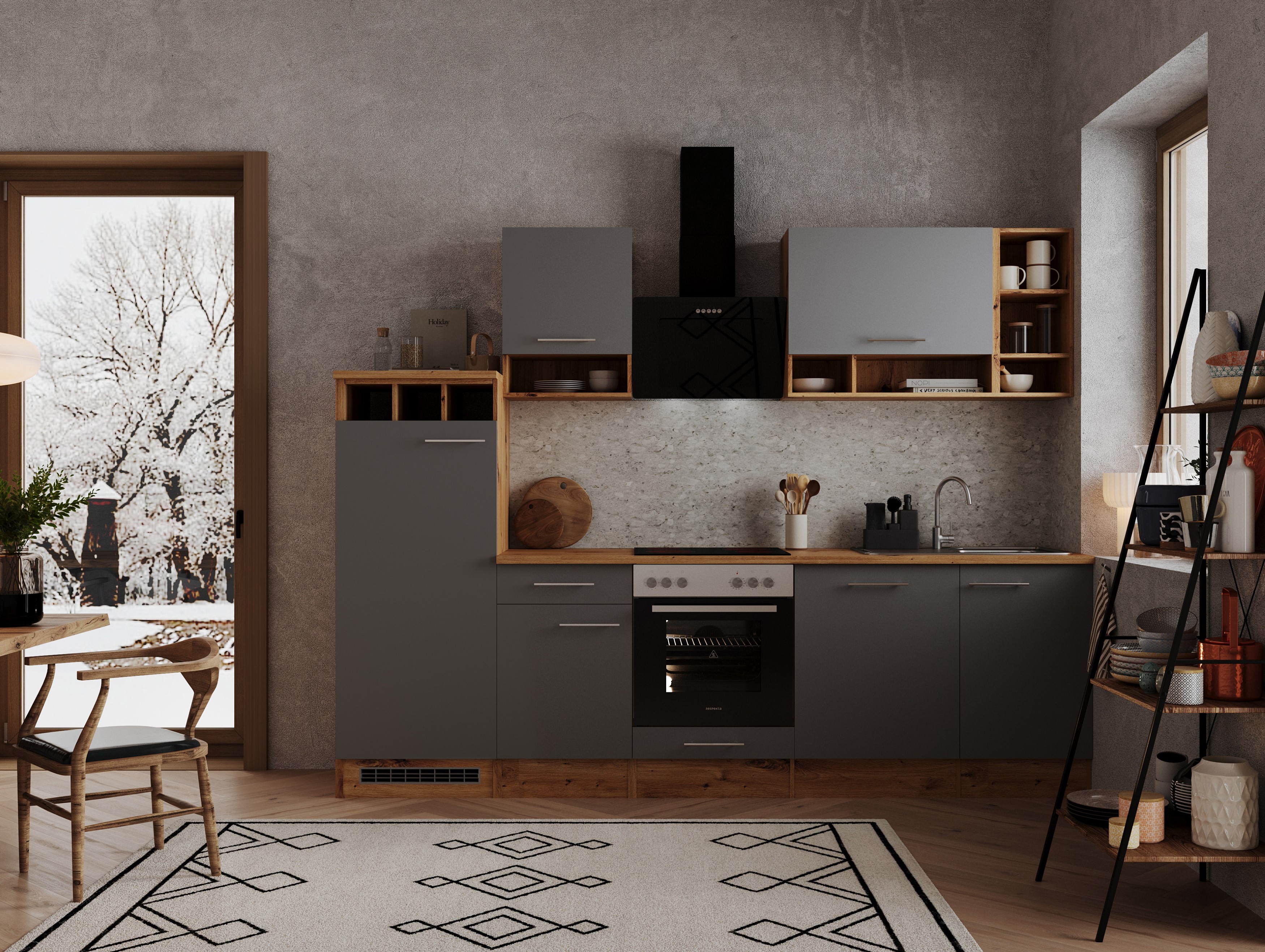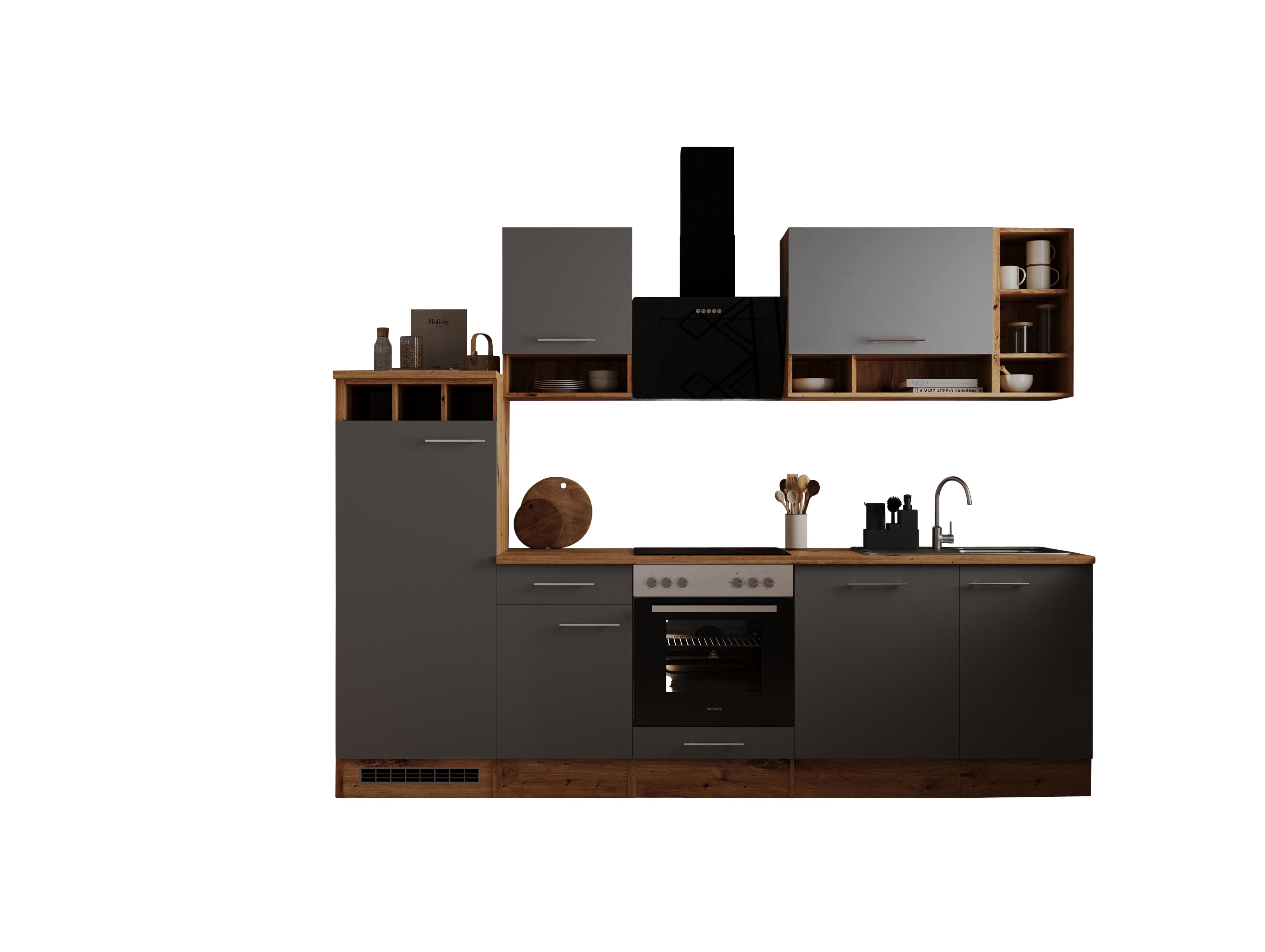 Eigenschaften "Küche Küchenzeile Leerblock Einbauküche Eiche Grau Hilde 280 cm Respekta"