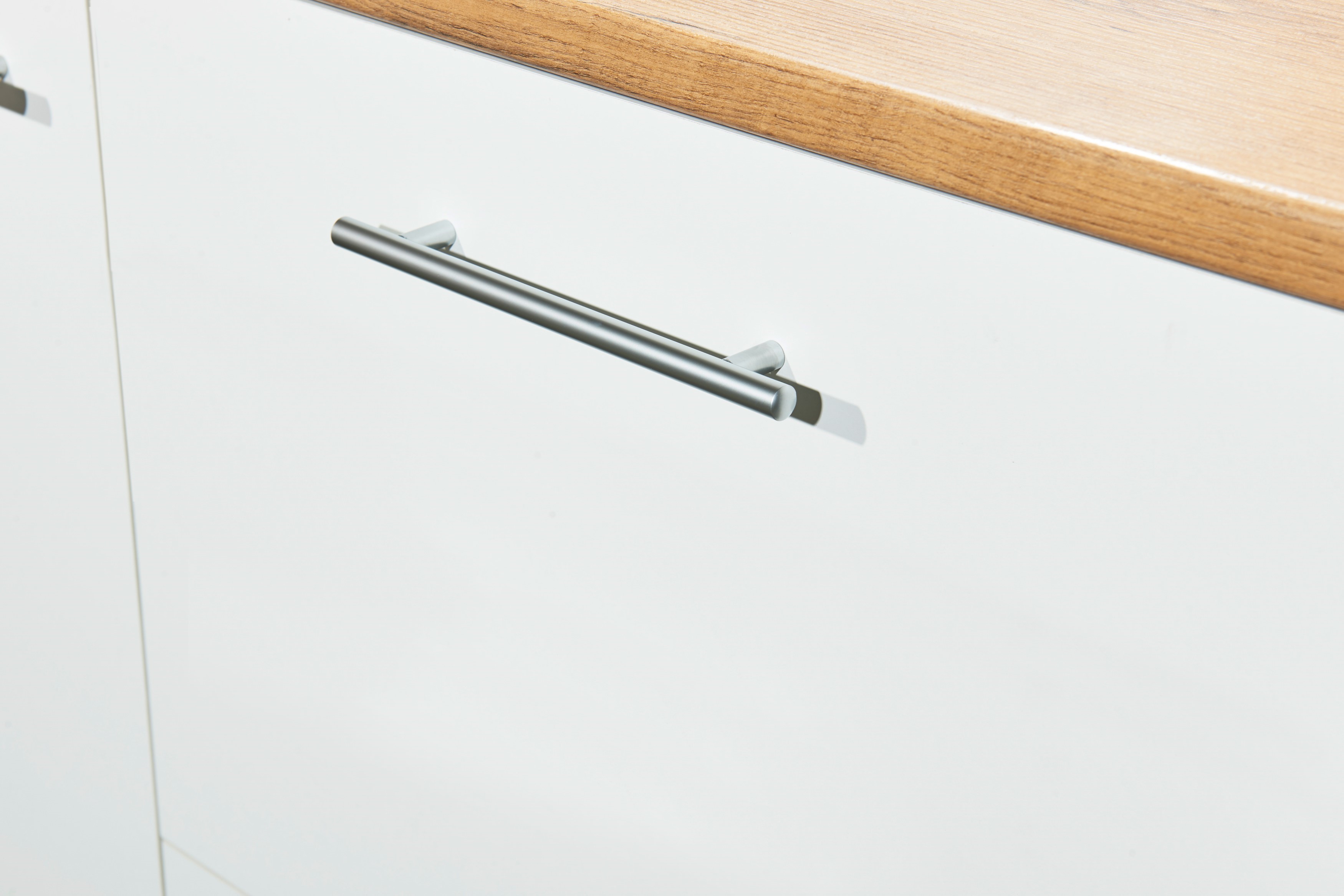 - Stangengriffe aus Metall: Die robusten Stangengriffe aus Metall verleihen der Küche einen modernen Touch und sorgen für eine angenehme Haptik und einfache Handhabung.