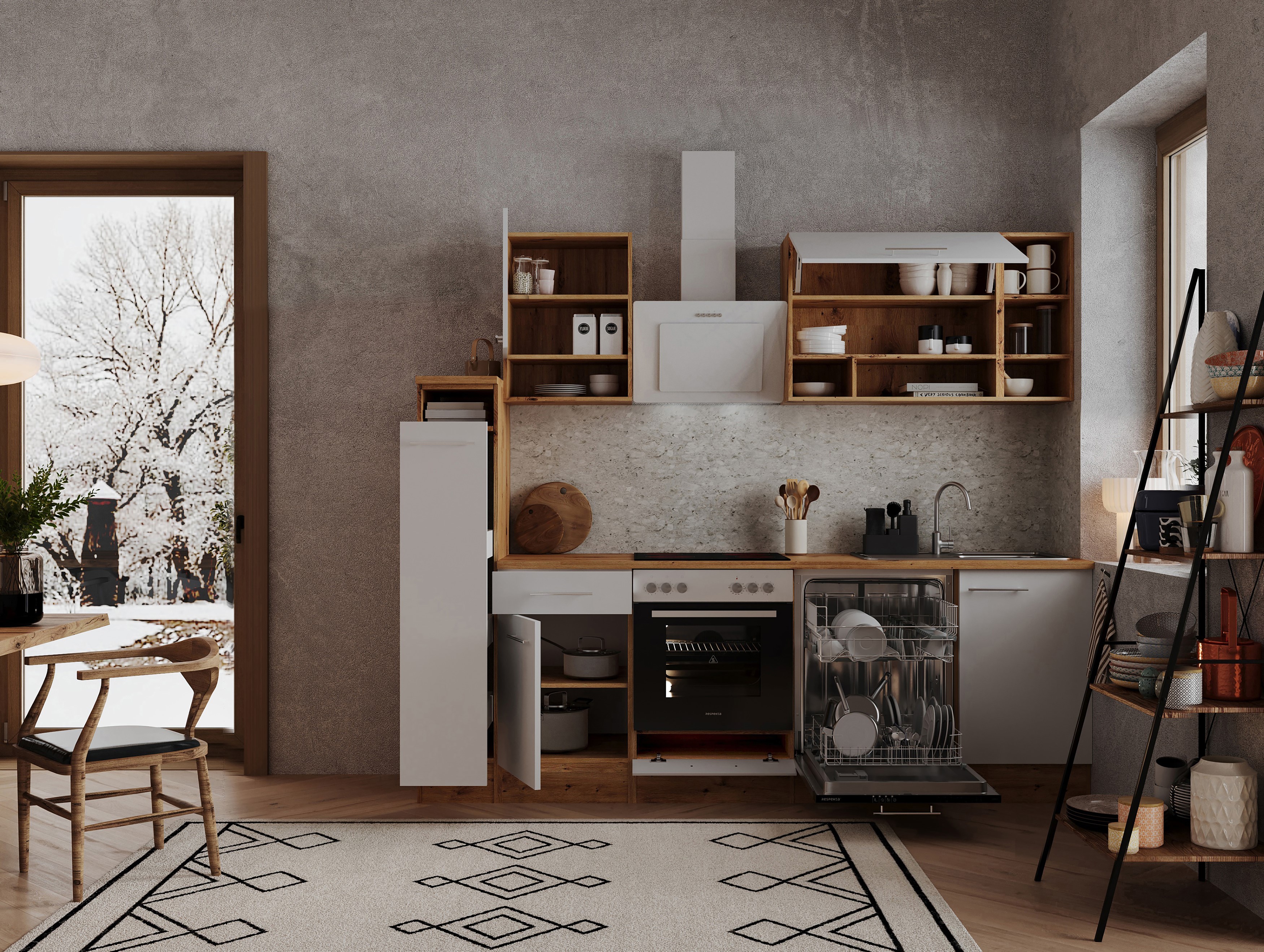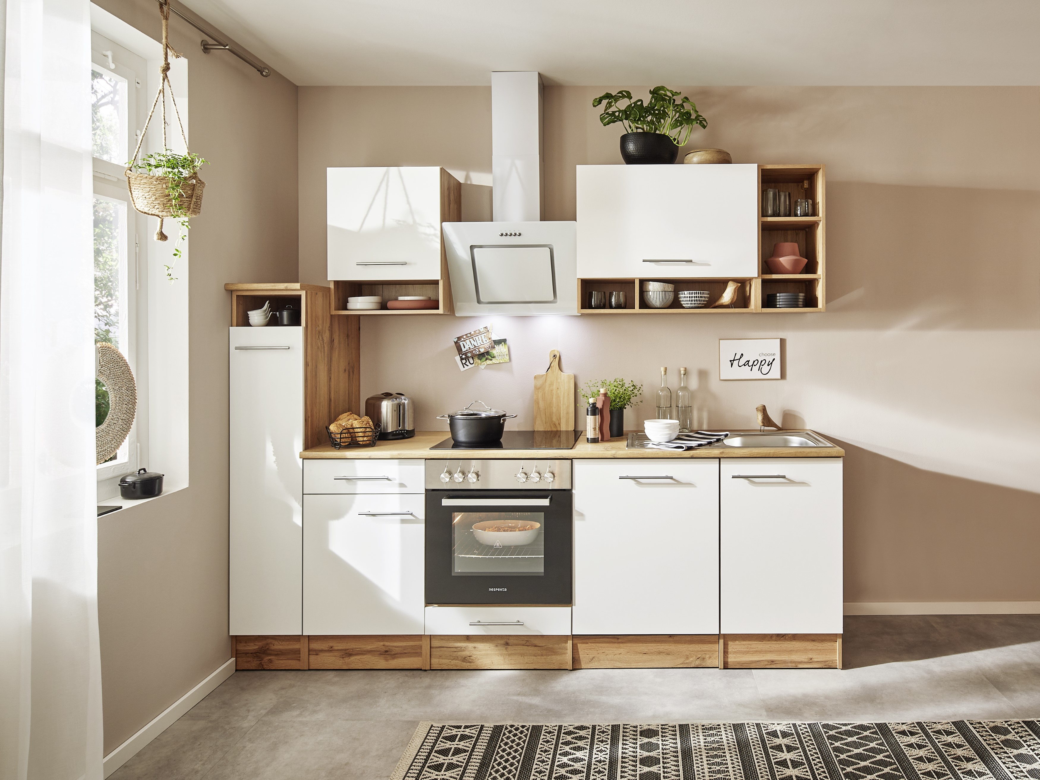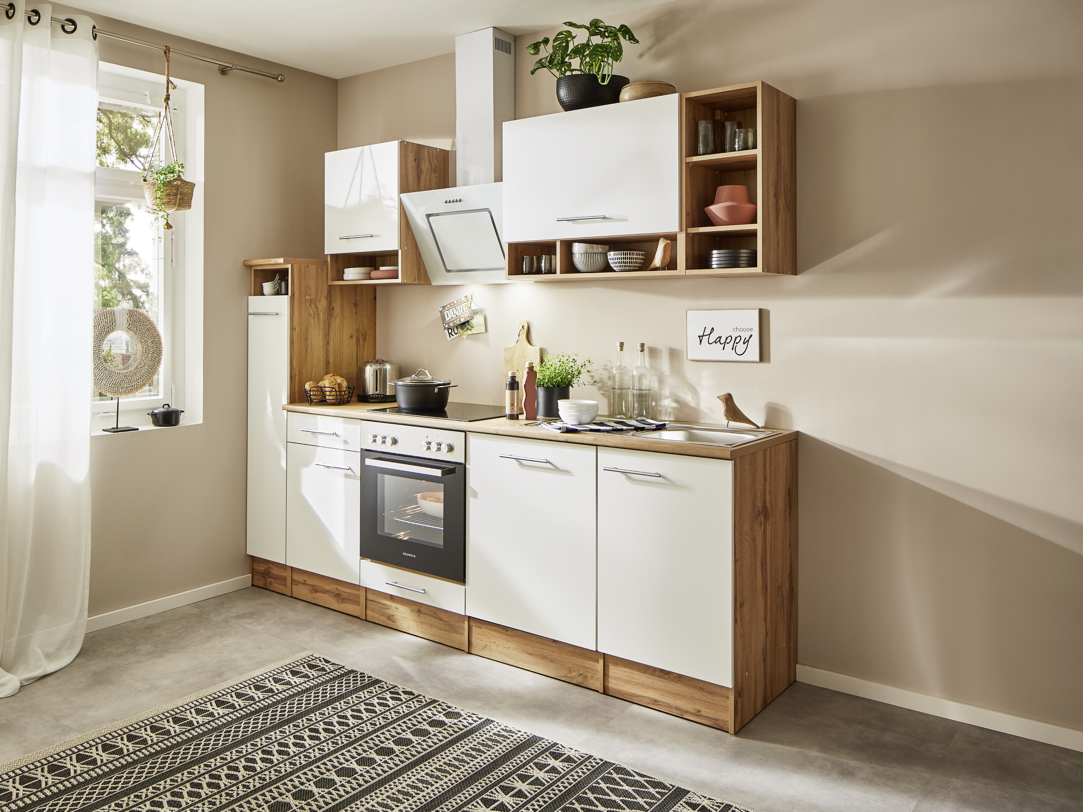 Eigenschaften "Küche Küchenzeile Leerblock Einbauküche Eiche Weiß Hilde 250 cm Respekta"
