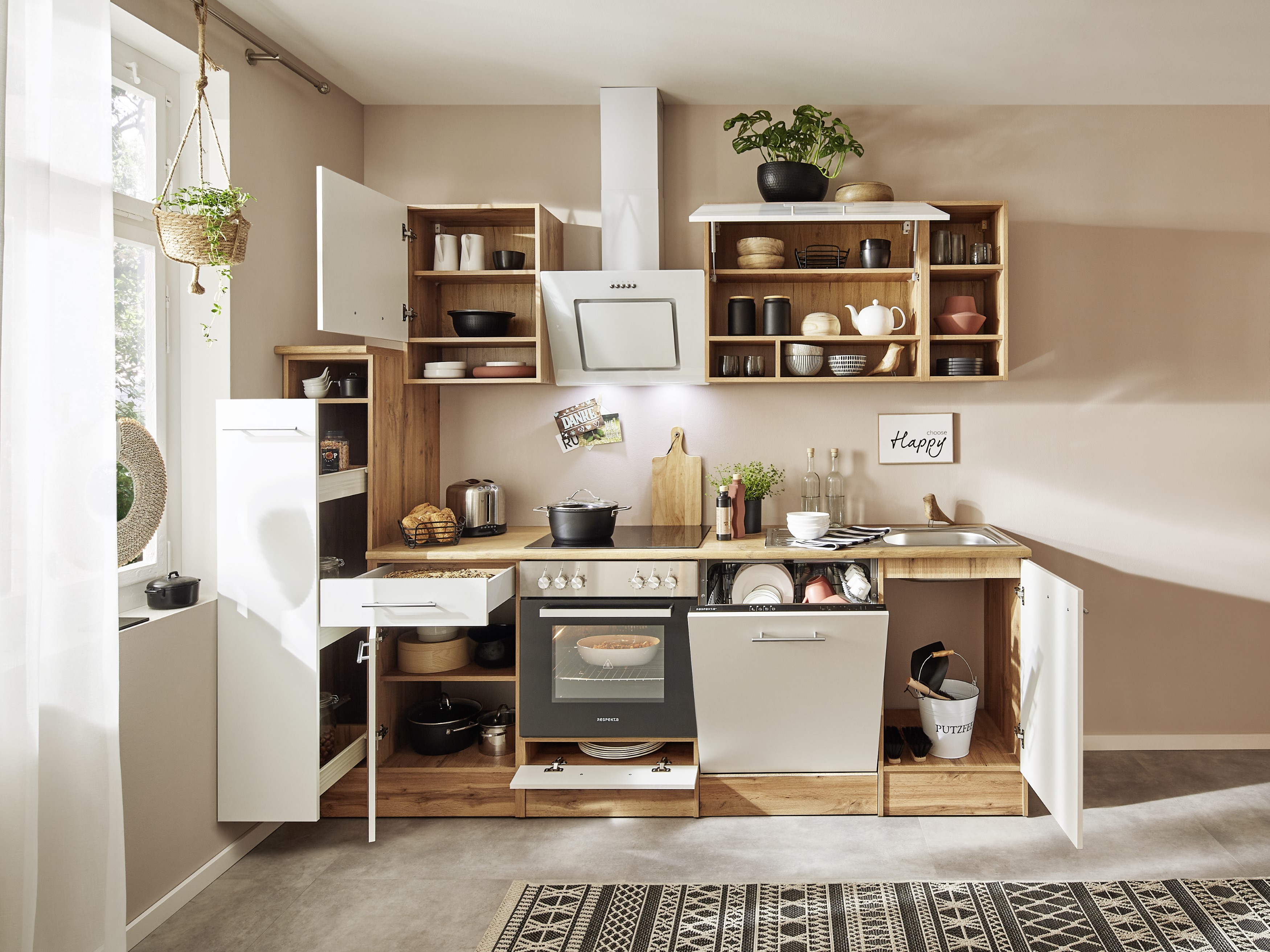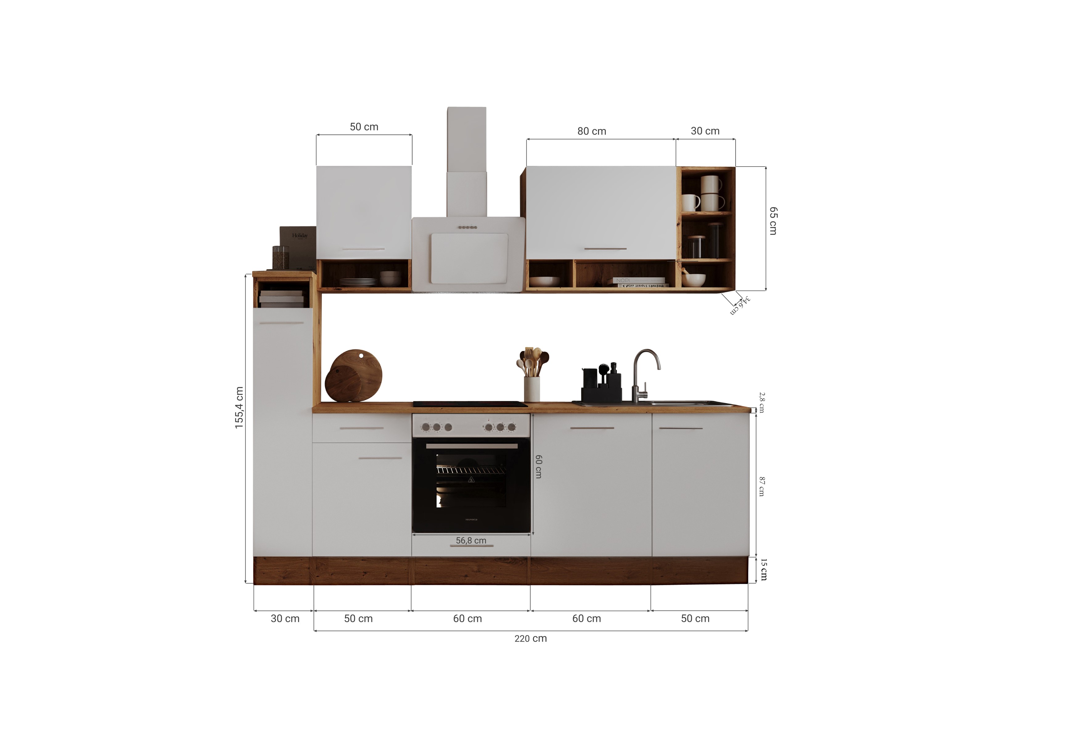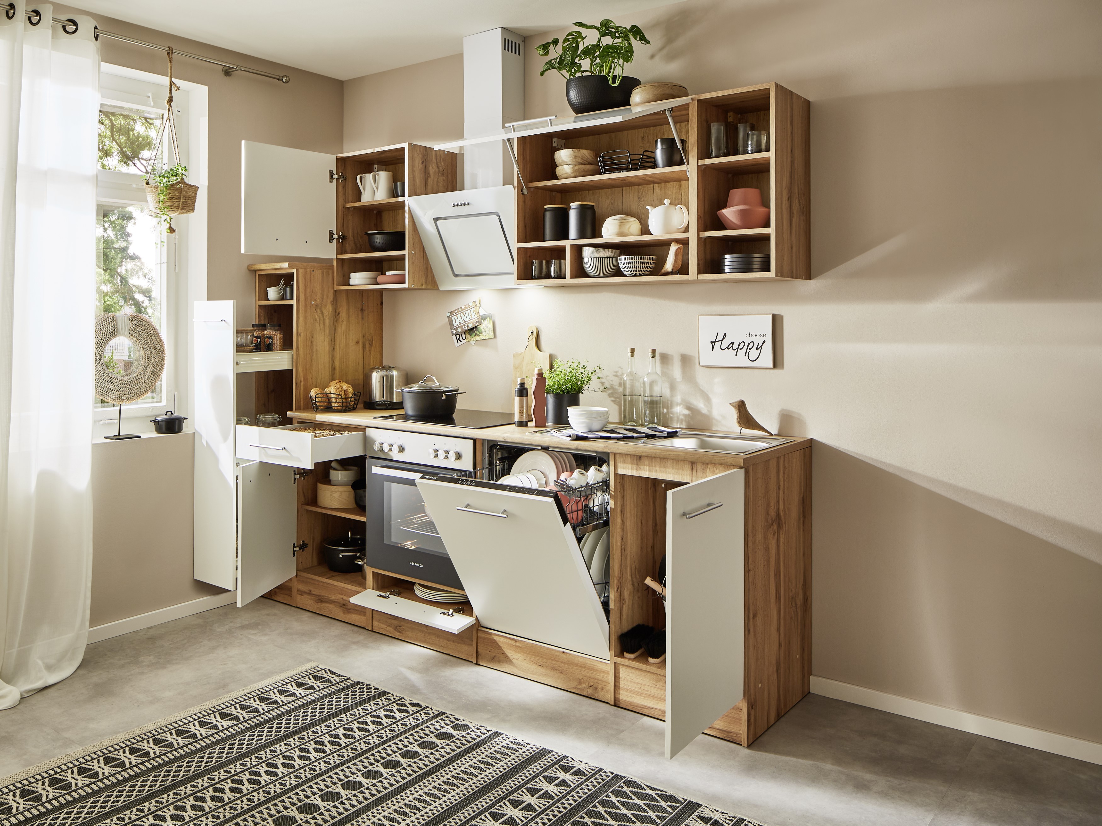 Eigenschaften "Küche Küchenzeile Leerblock Einbauküche Eiche Weiß Hilde 250 cm Respekta"
