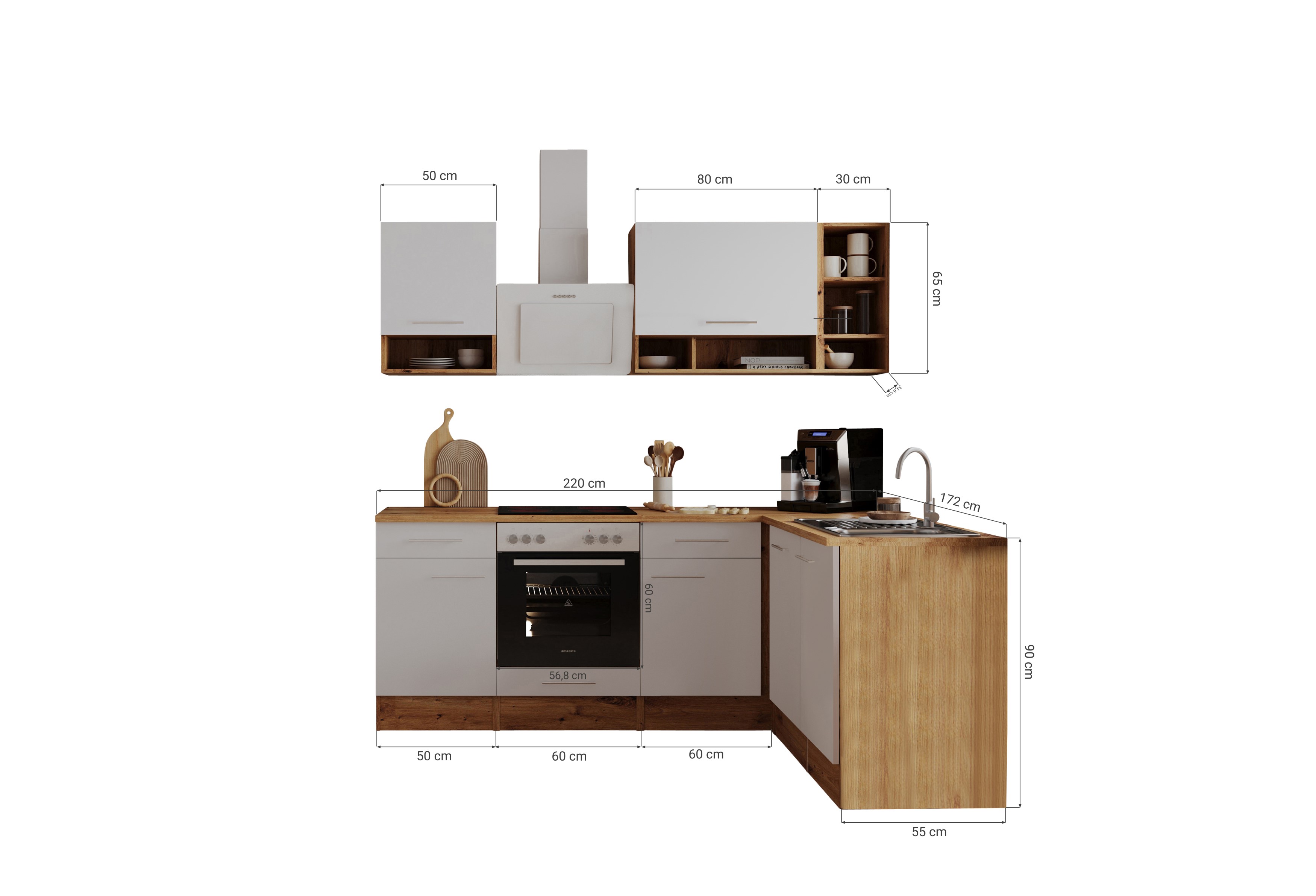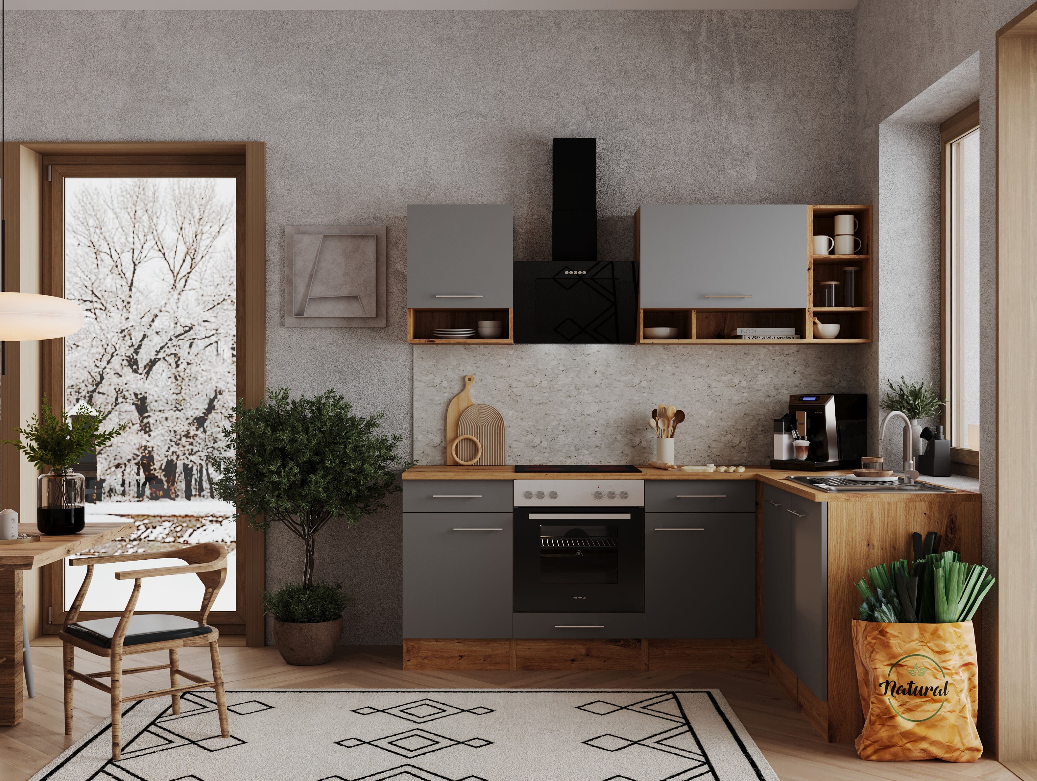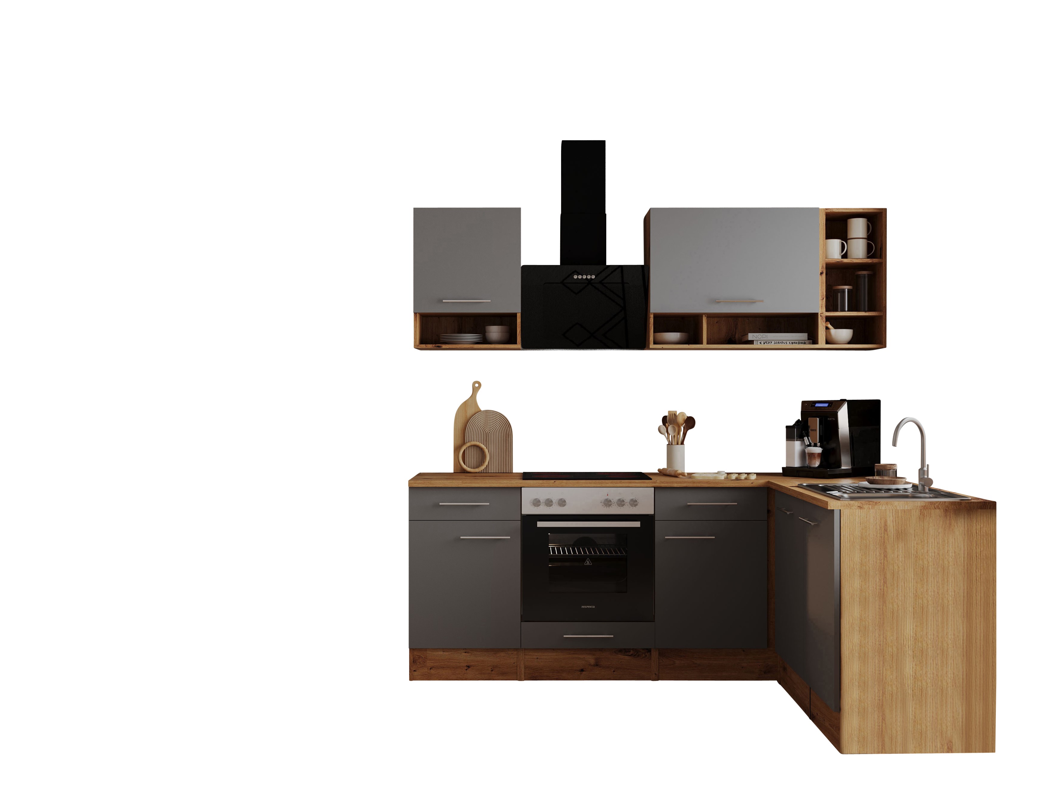 Eigenschaften "Küche Küchenzeile Leerblock Winkelküche Eiche Grau Hilde 220x172 cm Respekta"