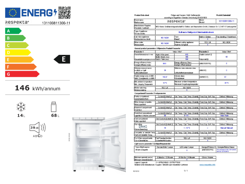 - Respekta Unterbaukühlschrank inkl. **** Gefrierfach