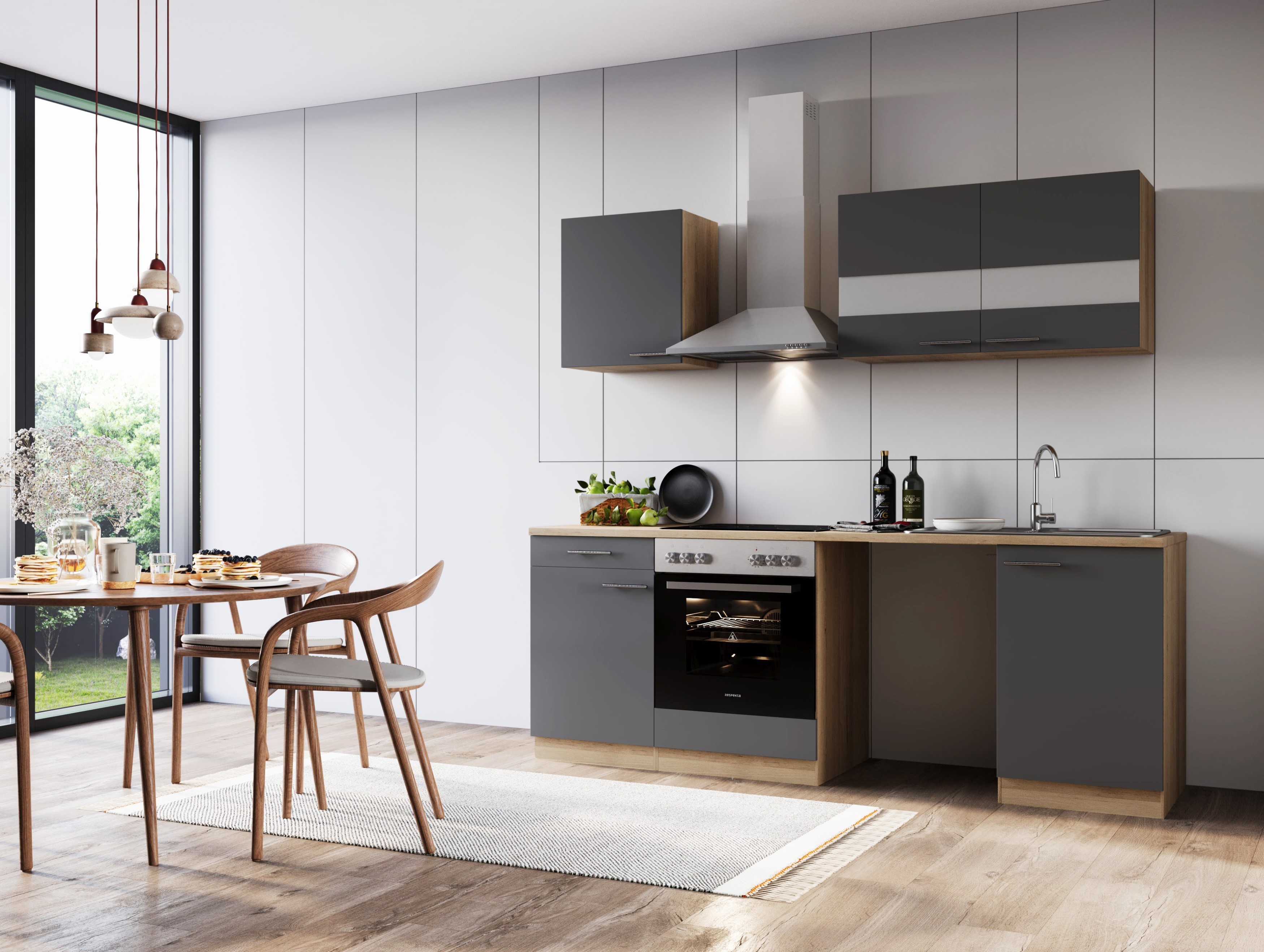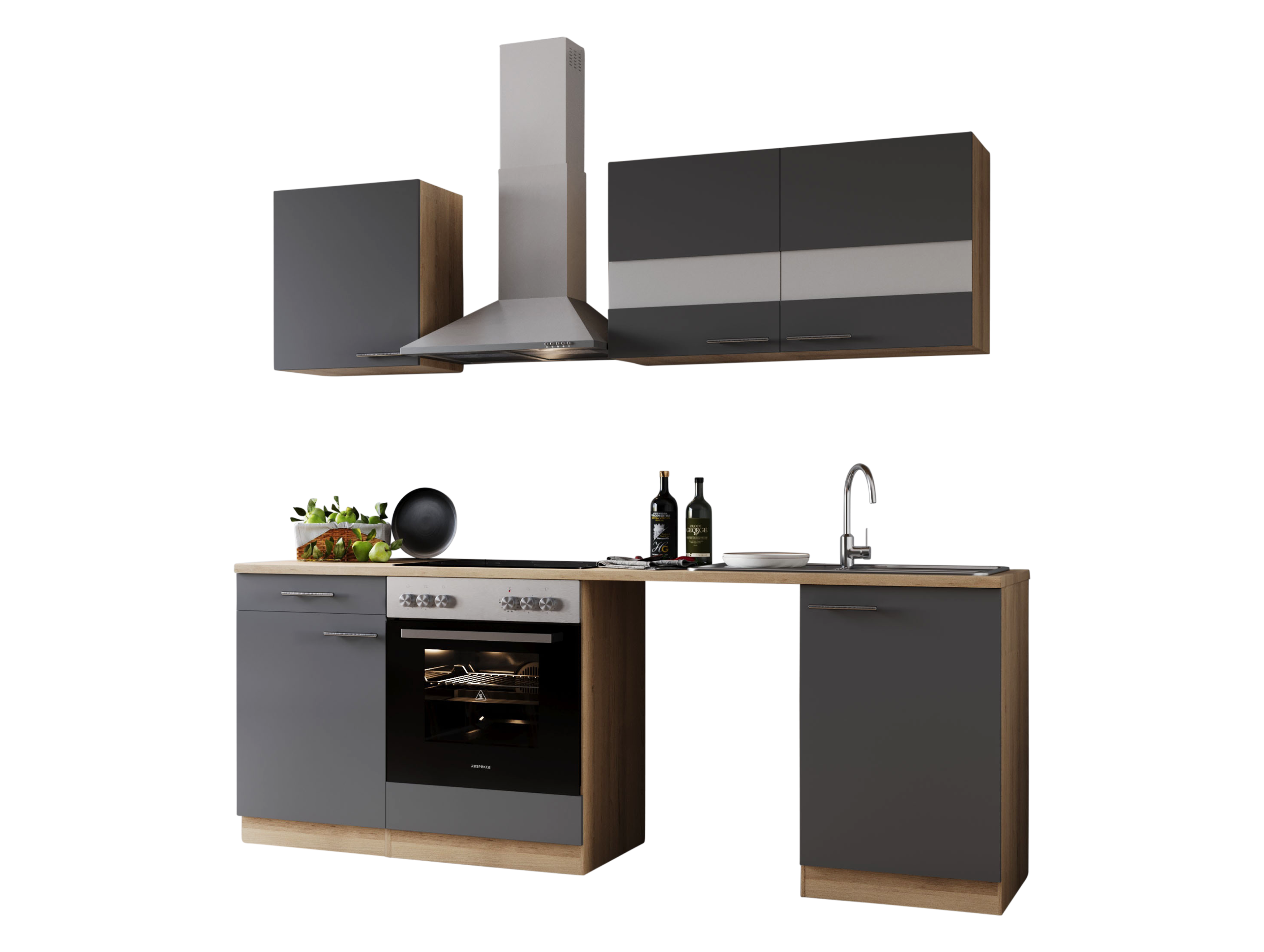 Informations sur le produit "Küche Küchenzeile für Einbau Waschmaschine Eiche Grau Merle 220 cm Respekta"