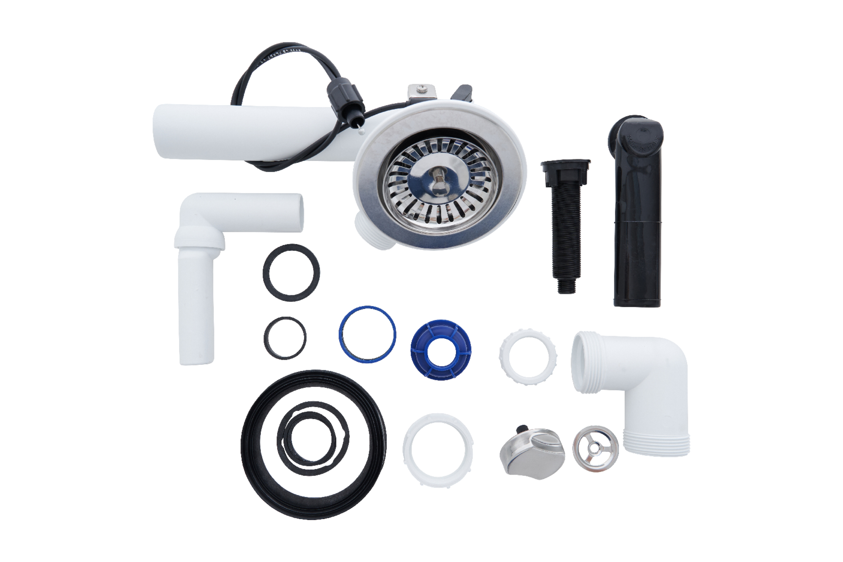 - Umfangreiches Zubehör: Inklusive Ab- und Überlaufgarnitur, Drehexcenter und Siebkorb (90 mm) für eine einfache Installation und Bedienung. Die Fixierklemmen sorgen für eine stabile Montage.