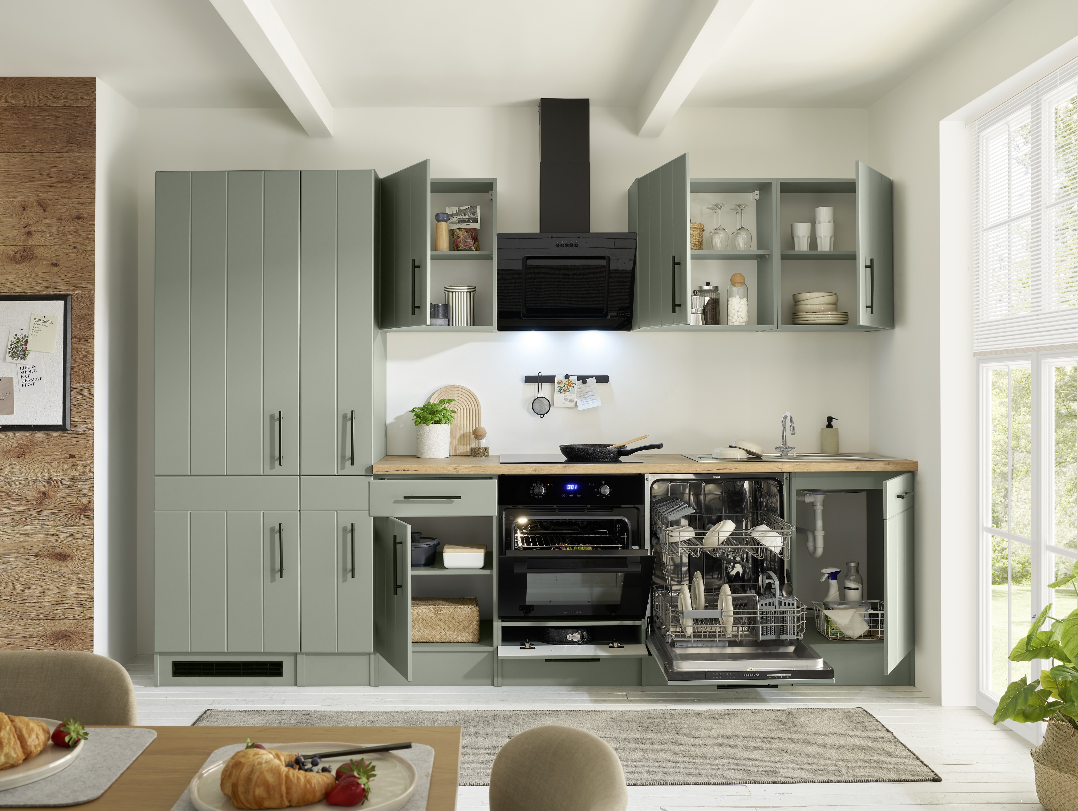 Respekta Premium Küche Anton – Schilfgrün trifft auf zeitgemäßen Landhausstil für eine frische, moderne Küche.