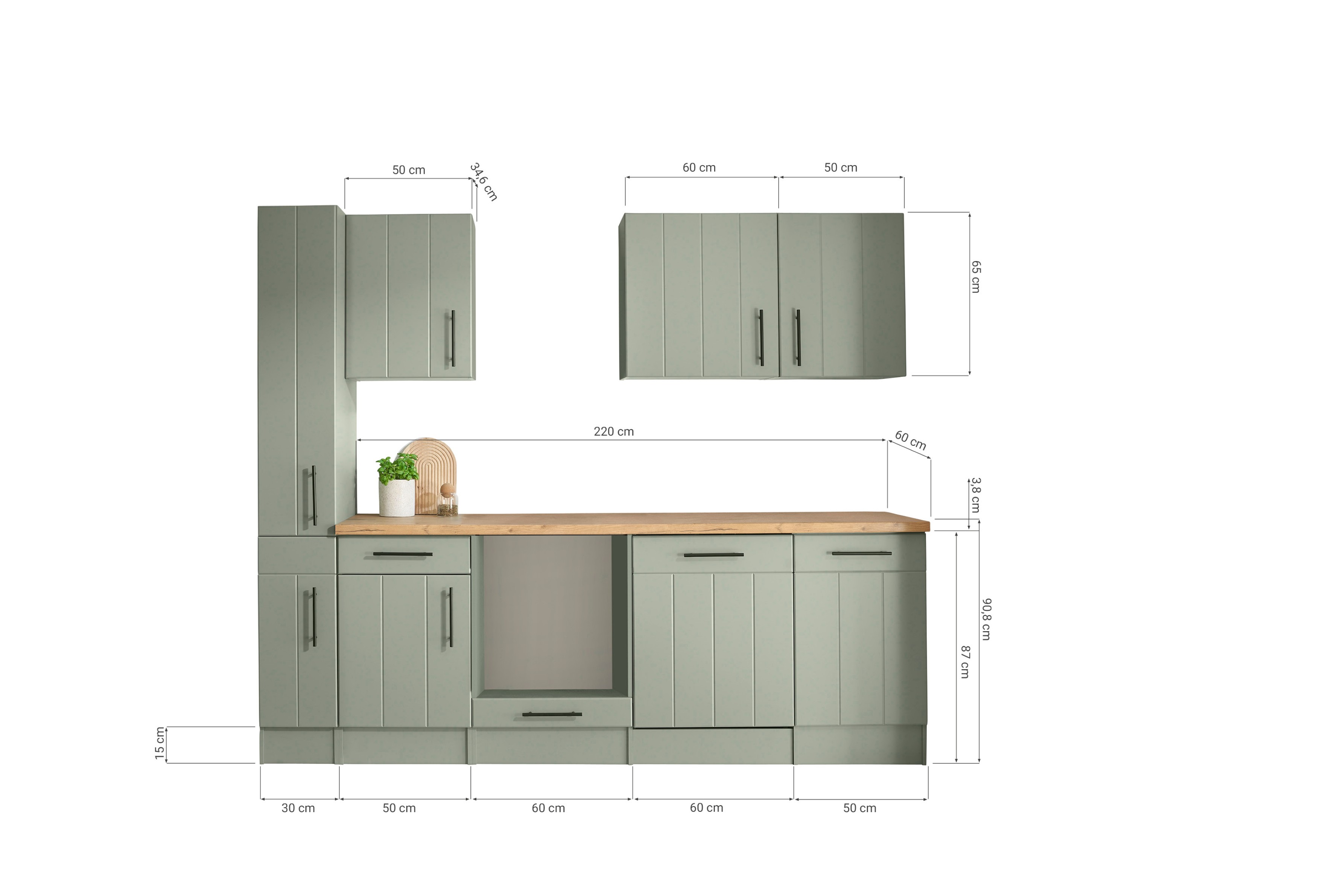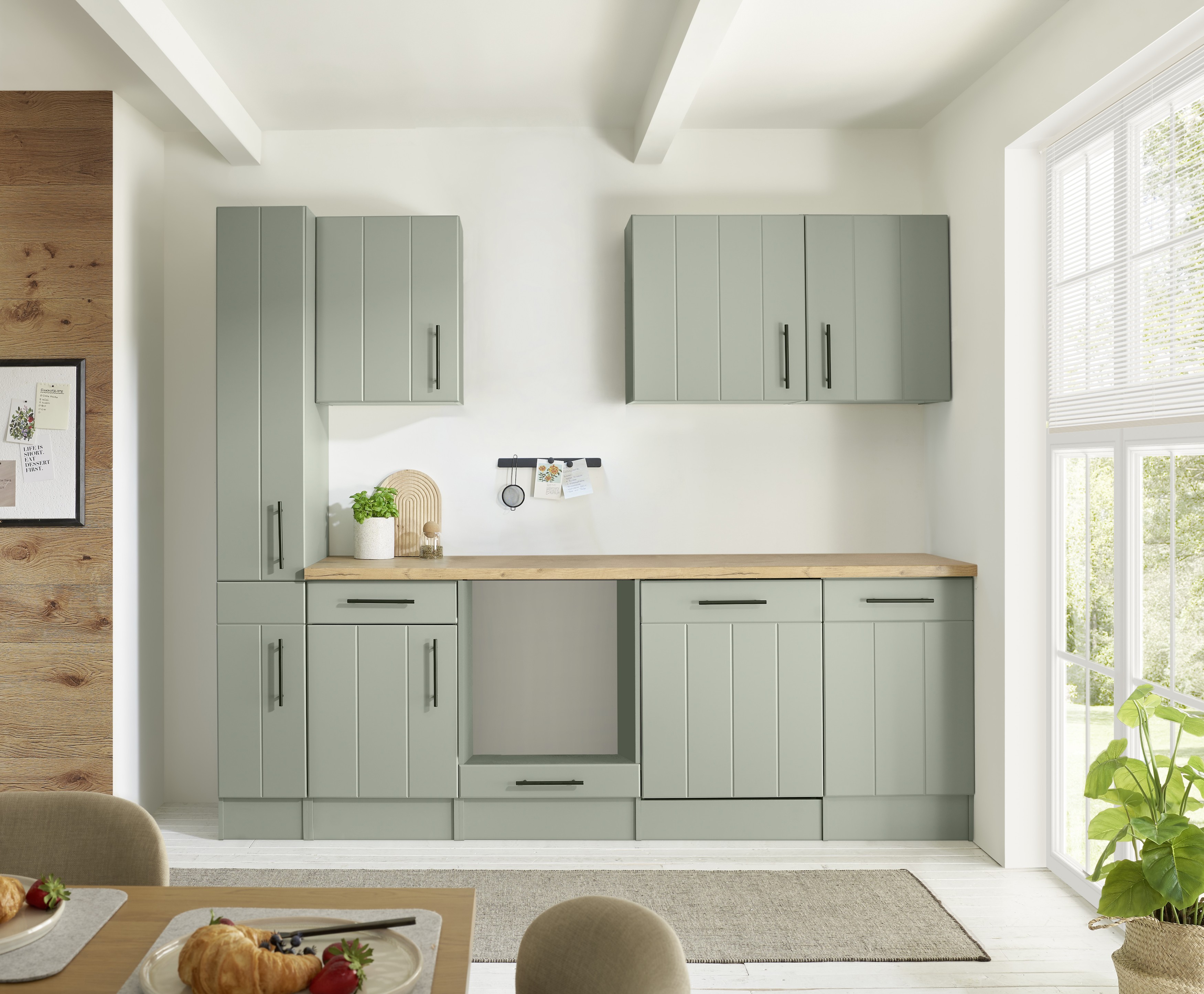 Küche Leerblock Anton – 250 cm Landhausküche in Schilfgrün