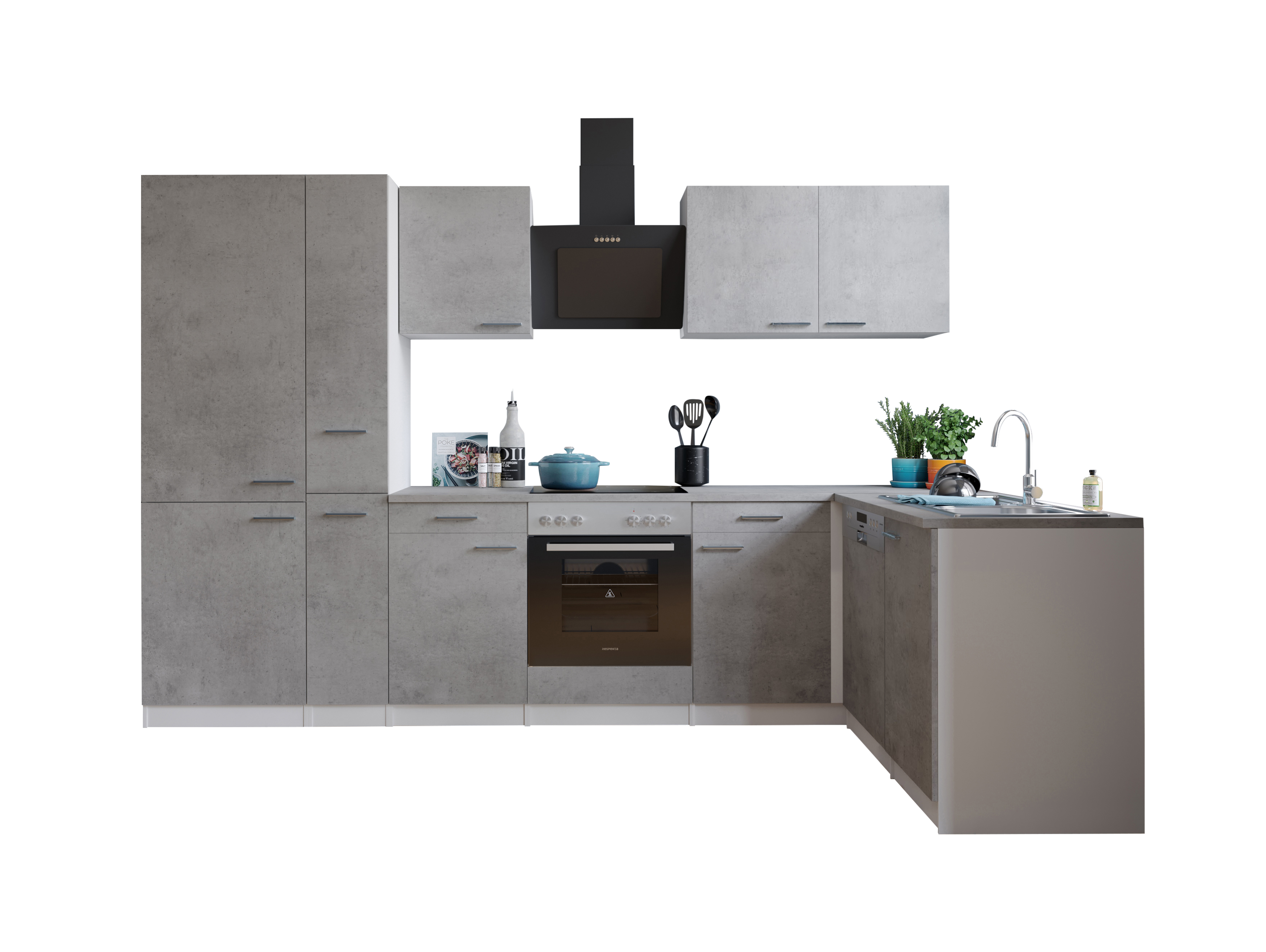 Eigenschaften "Küche Küchenzeile Küchenblock Winkelküche Weiß Beton Malia 310x172 cm Respekta"