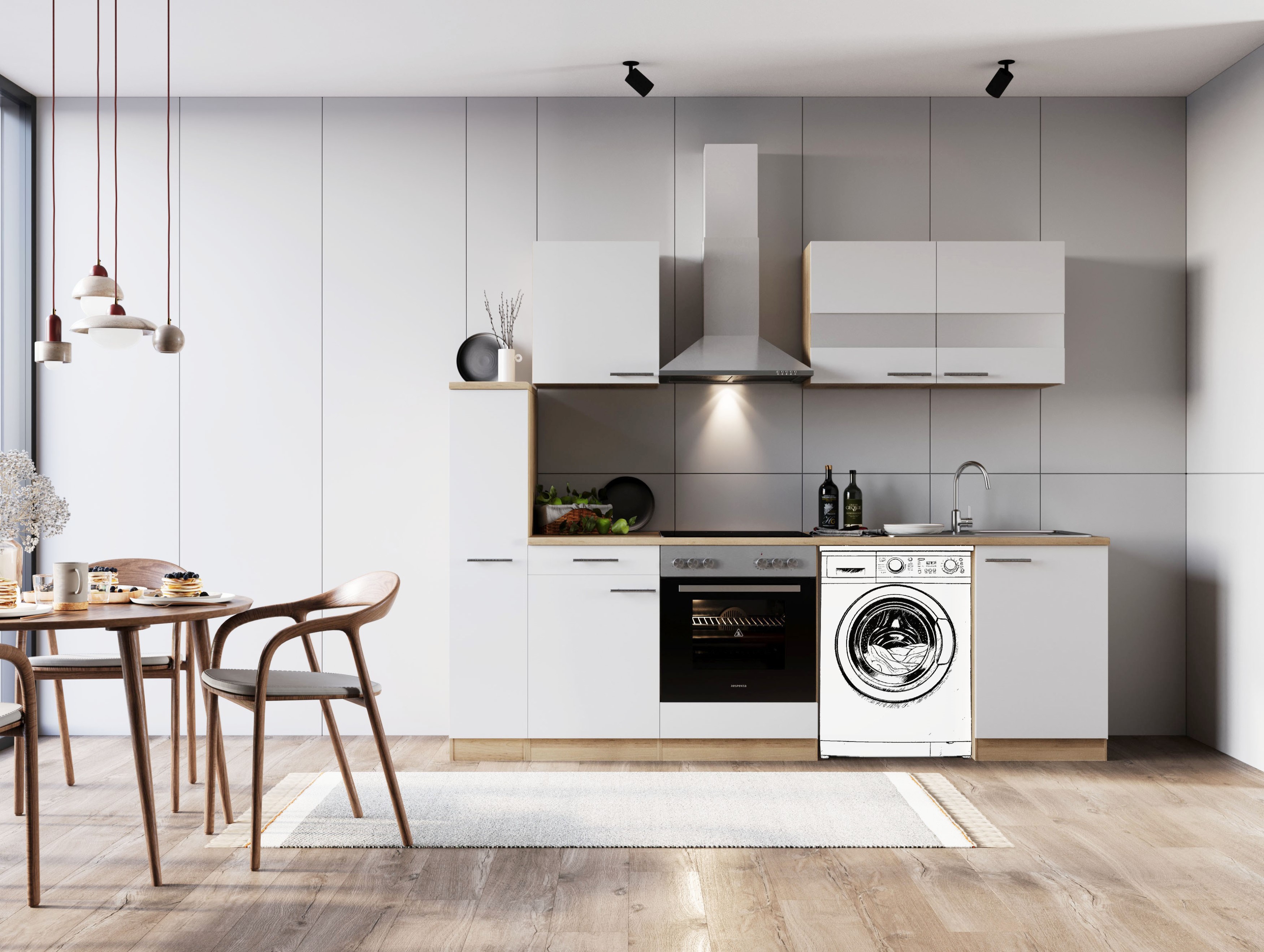 Info sui prodotti "Küche Küchenzeile Leerblock Einbau Waschmaschine Eiche Weiß Merle 250 Respekta"