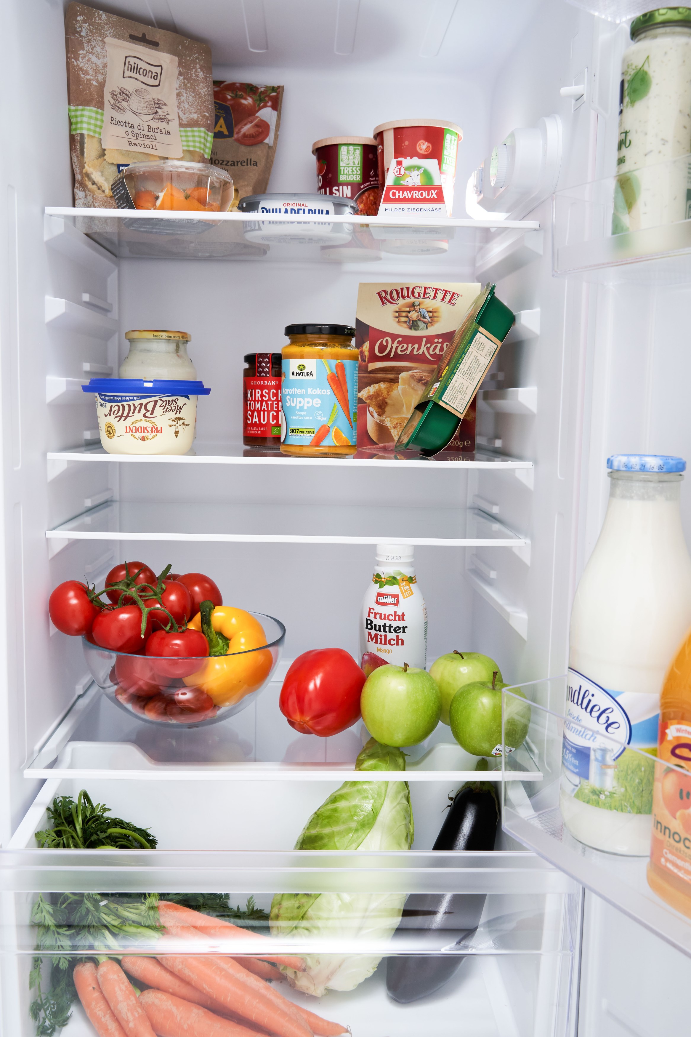 - Flexible Stauraumaufteilung: 4 Glasablagen, 1 Gemüseschublade, 3 Türablagen im Kühlteil und 1 Ablage im Gefrierteil.