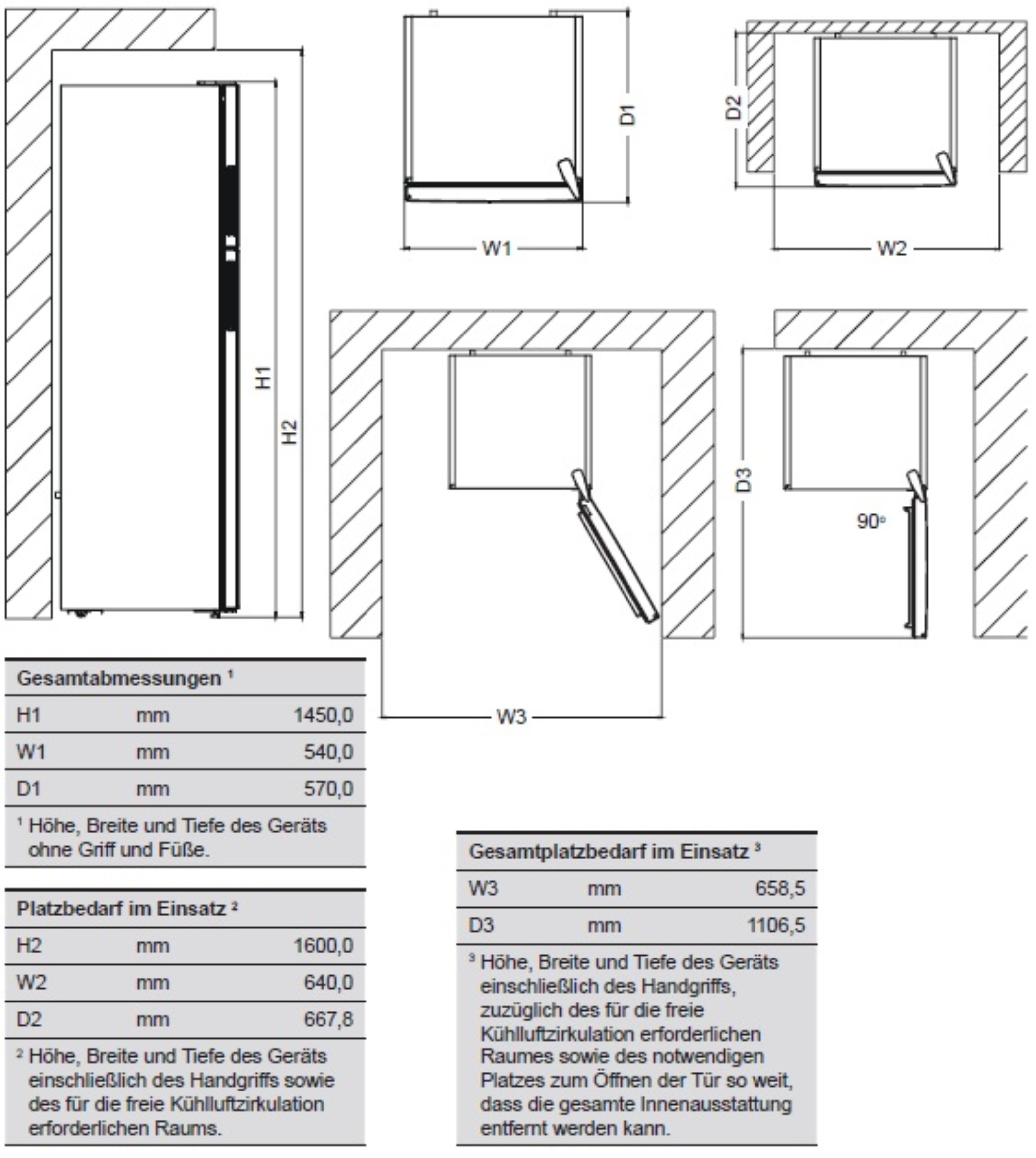 - Abtauverfahren: Automatisches Abtauen im Kühlteil und manuelles Abtauen im Gefrierteil.
