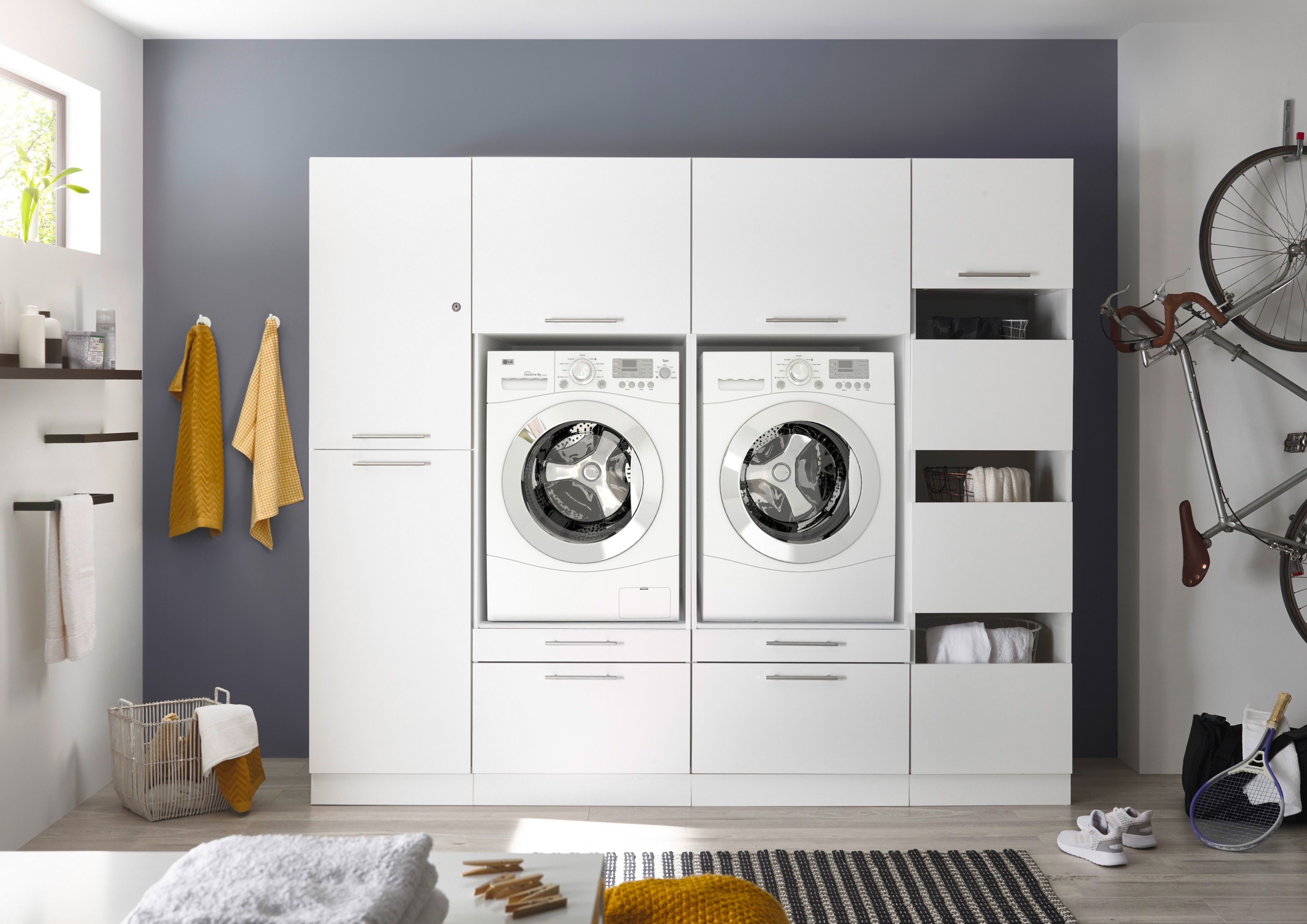- 2 Waschmaschinenschränke mit Nische für je ein Gerät