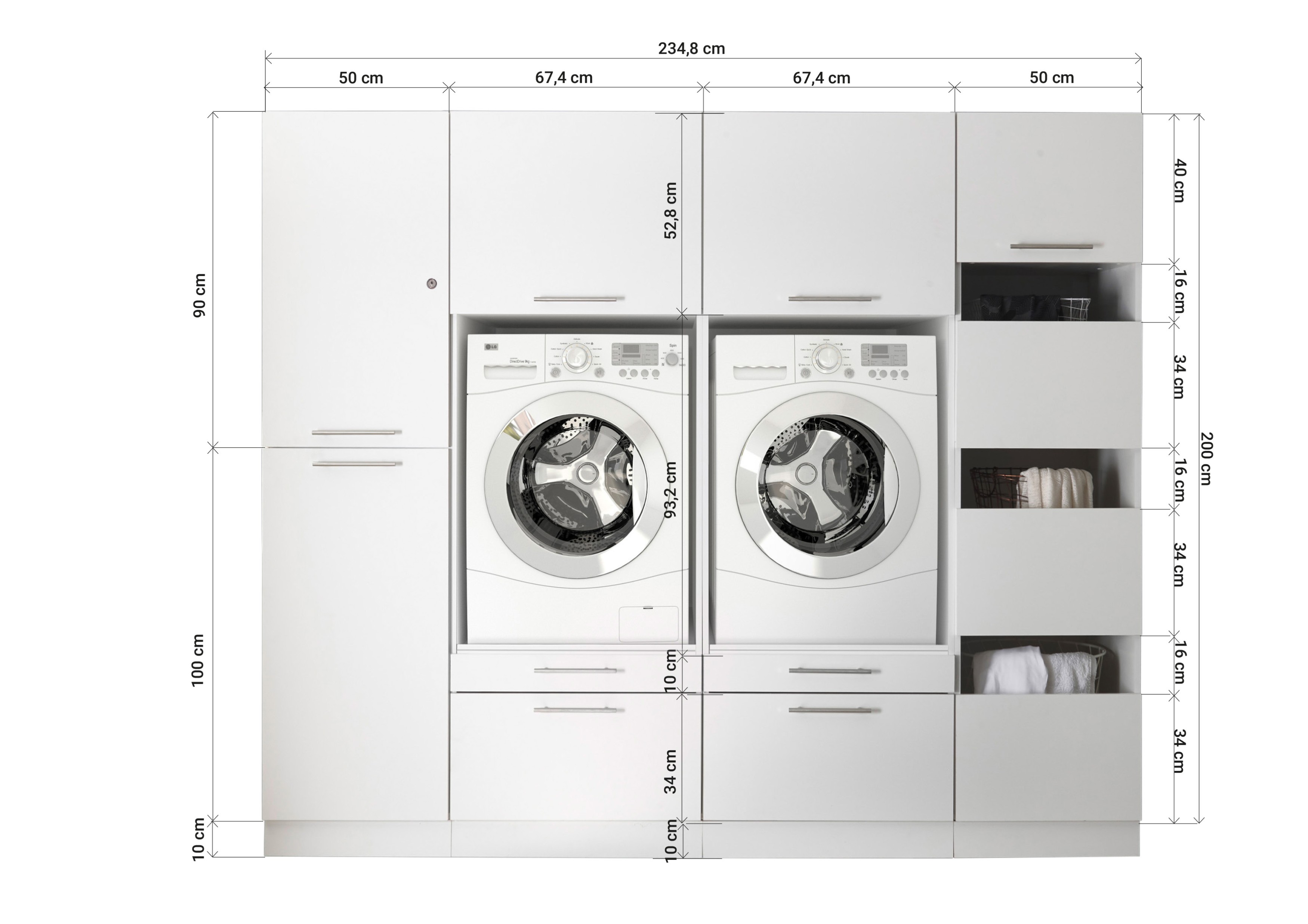 Diese vielseitige Lösung für Ihre Haushaltsgeräte ermöglicht es Ihnen eine gewünschte Kombination aus Waschmaschine und/oder Trockner platzsparend und praktisch zu platzieren, ohne dabei eine stilsichere Optik aus den Augen zu verlieren.