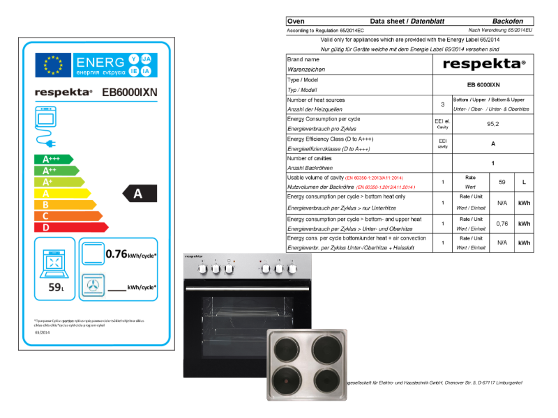 - Cucina convenzionale da incasso, classe di efficienza energetica A, acciaio inossidabile